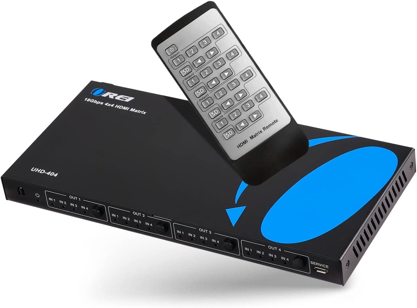 OREI HDMI Switch/Splitter 4x4 4K Matrix (4 Input, 4 Output) with Remote Control