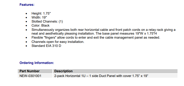 Newlink Horizontal Cable Management Duct 1-Side (NEW0301001)