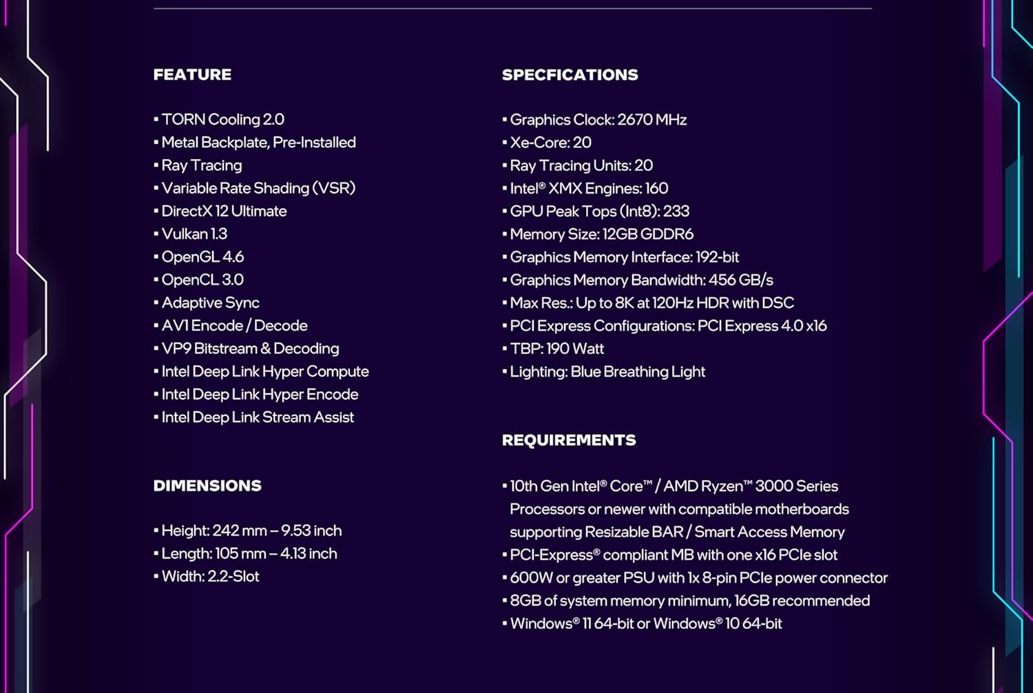 • ARCHITECTURE: Built on Intel Arc graphics architecture, delivering modern gaming features and capabilities
