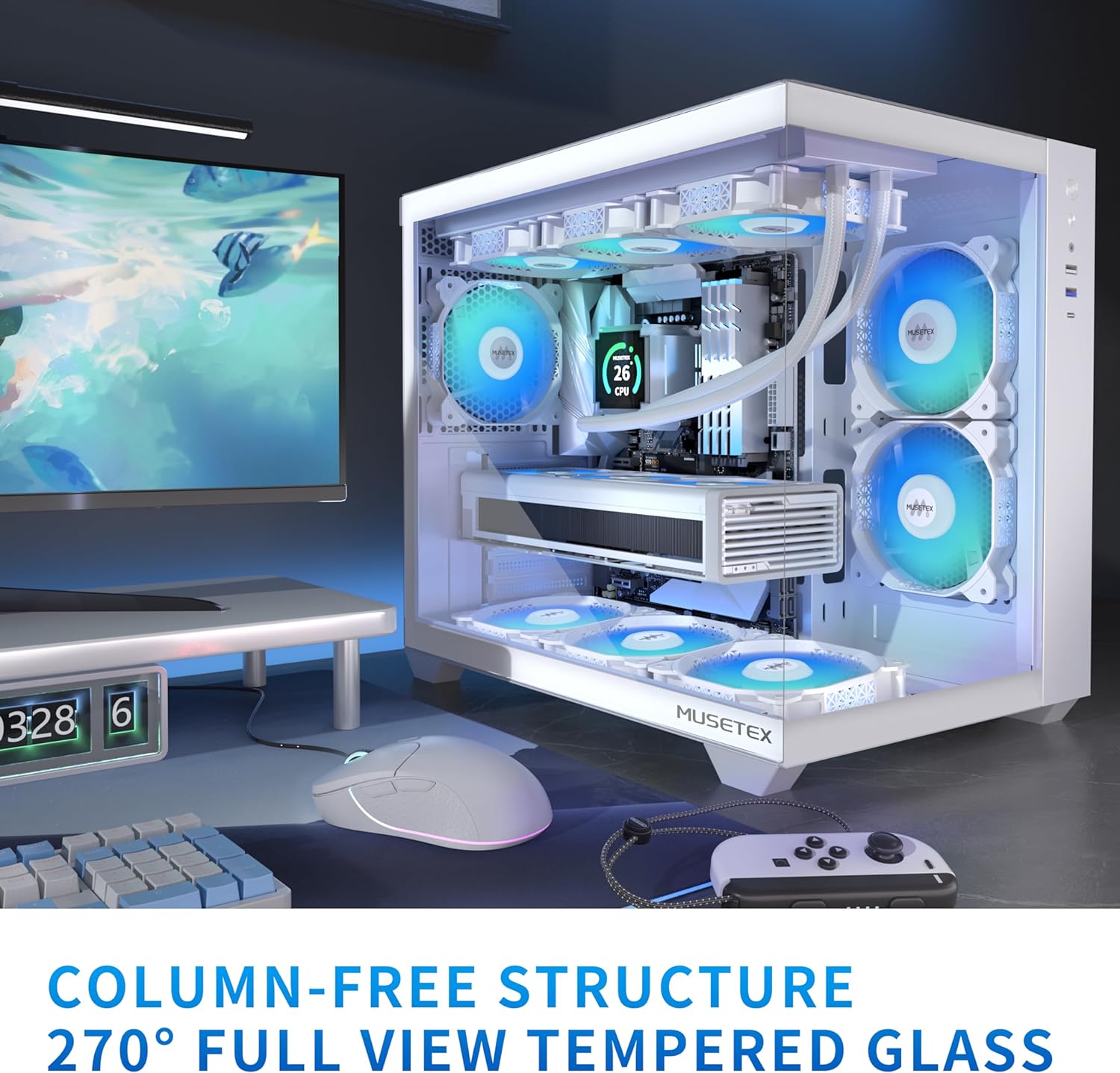 CASE: MUSETEX ATX Temprered Glass Mid Tower Case – 6 PMW ARGB Fans