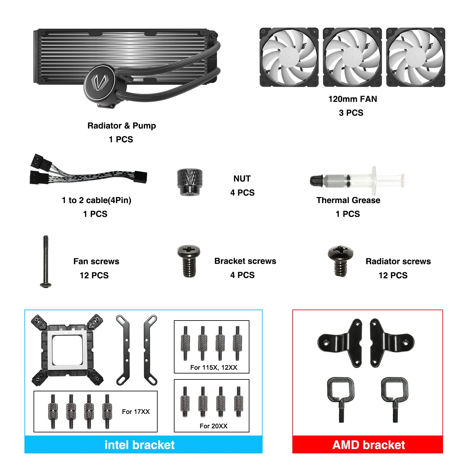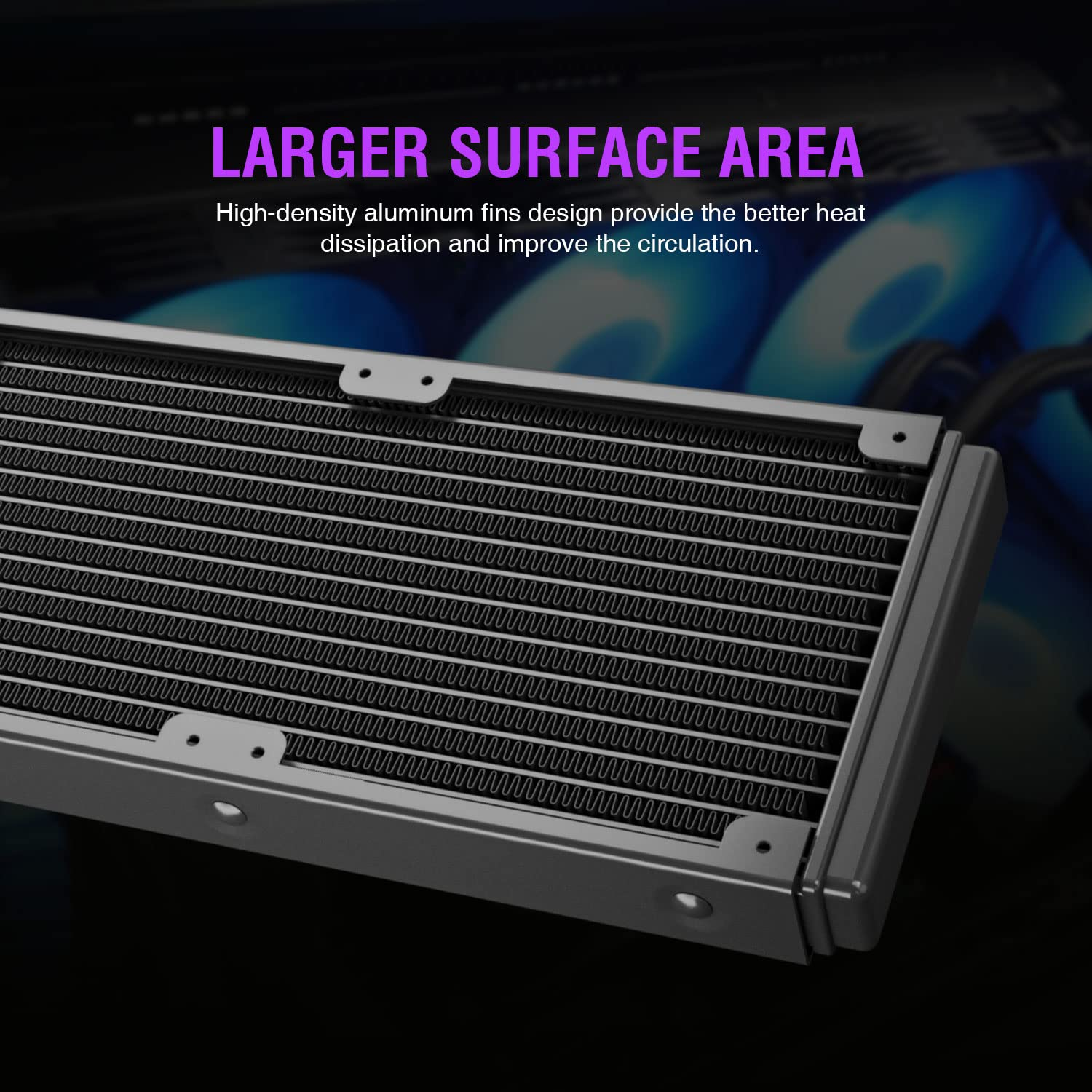 • Better Cooling Performance: With a more efficient cold plate, spraying copper bottom, proprietary pump and fans optimized for static pressure to make sure the excellent heat transfer from cpu.