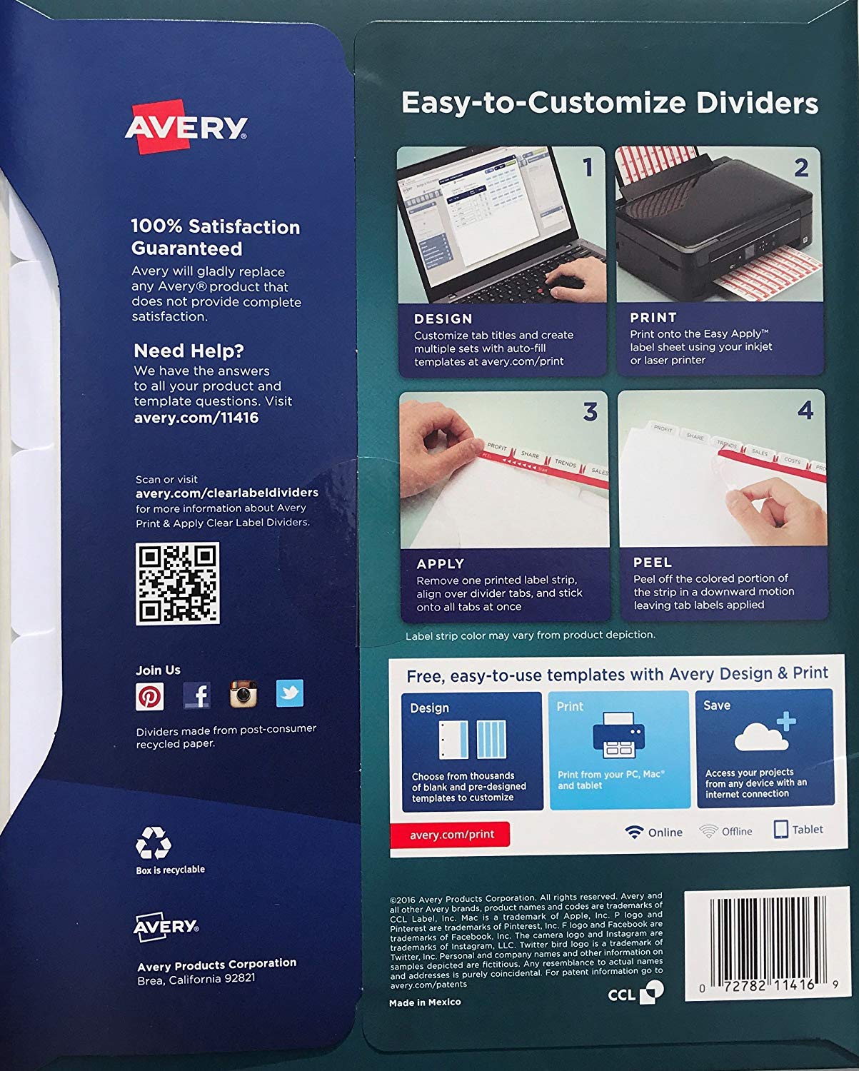 Laminated tabs allow you to write, erase and reuse Tabs are 50% bigger than typical tabs to provide more space for writing Get free software and templates at avery's website Three-hole punched with tear-resistant reinforced line for durability Label the tabs with ease using either pen or pencil