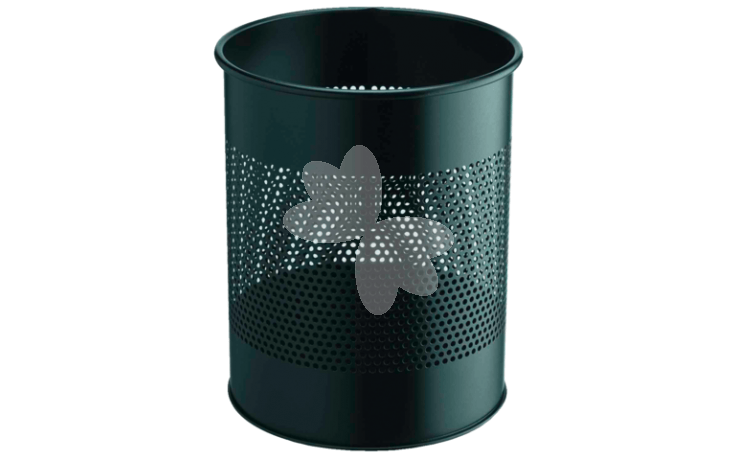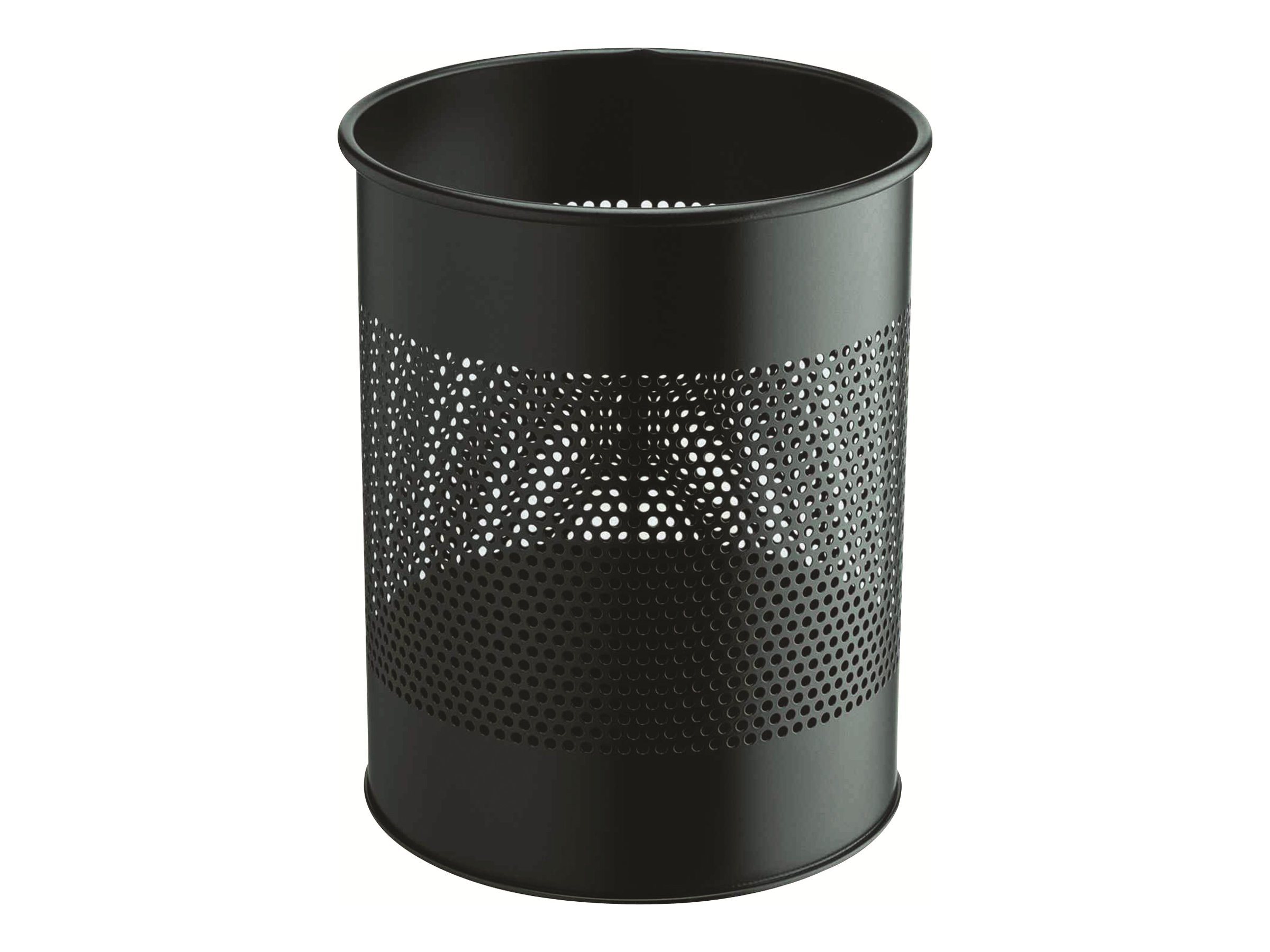 DURABLE PERFORATED WASTE BASKET 15LT 165MM Decorative and elegant paper trays. With decorative perforation of 165mm height. With strong epoxy lacquer. The powder coating is water-based and solvent-free. 15 liter. Diameter: 260mm, height 315mm.