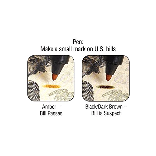 - UV light detects security strip in US currency. Pen detects genuine US currency paper.