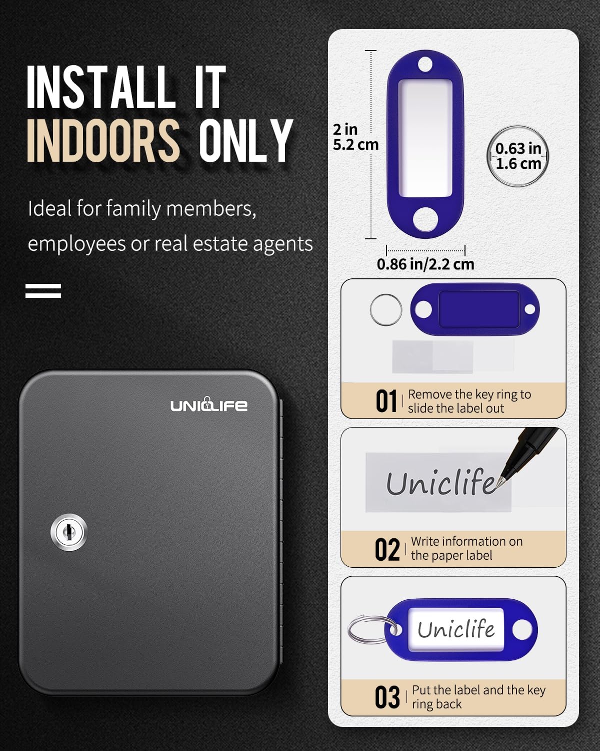 • 20 Positions: The storage case has been greatly optimized to make the best use of space. Practical to hold up to 20 keys. Ideal for schools, houses, companies, real estate agencies, etc. Install it INDOORS ONLY!