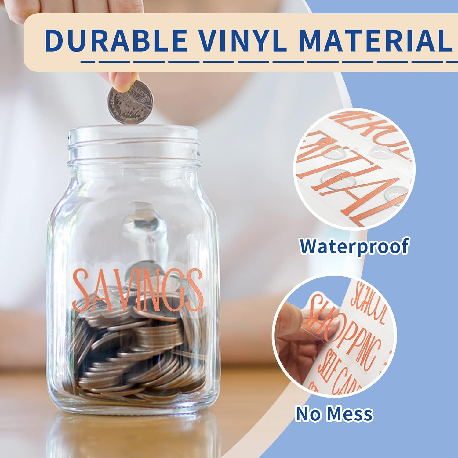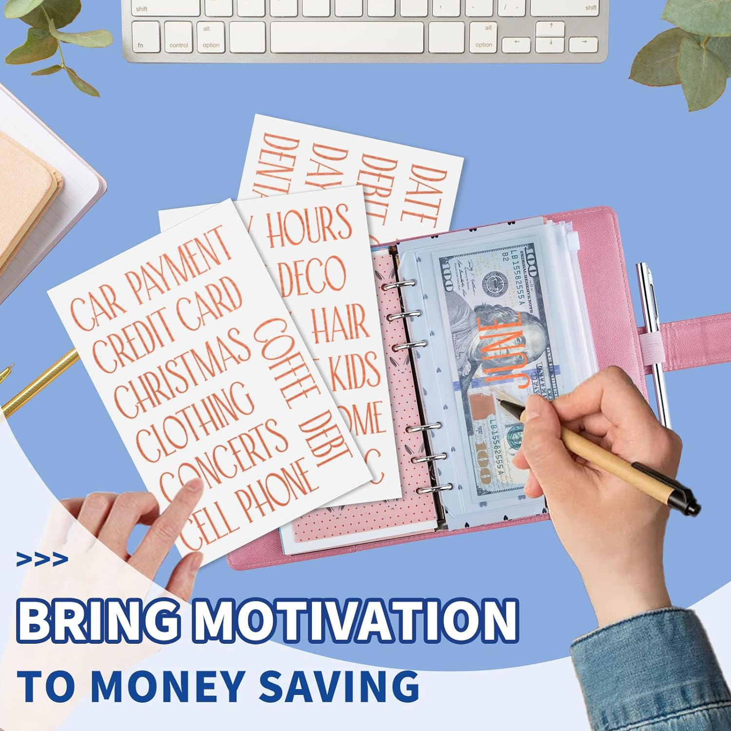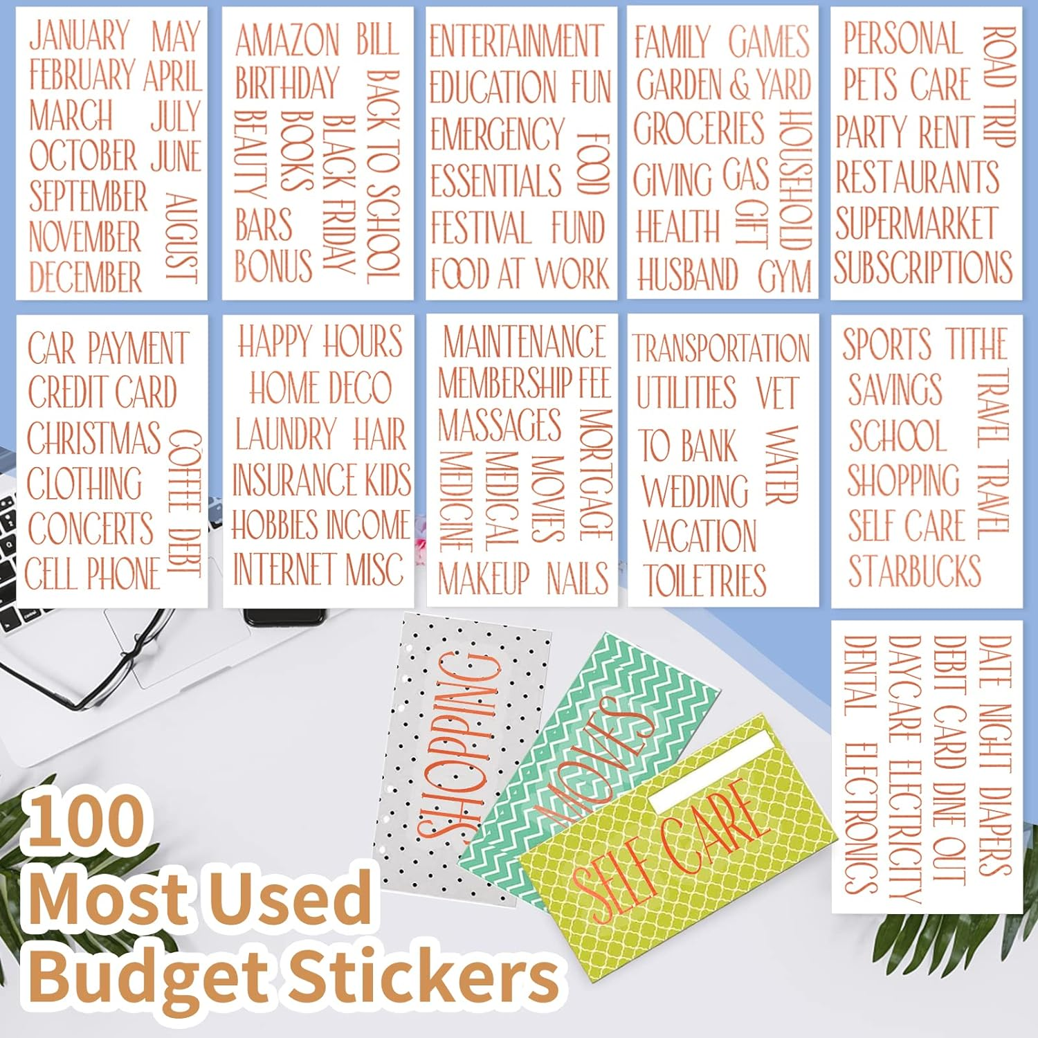 100 Cash Envelope Label Stickers - Rose Gold Budget Category Stickers for Money Saving Binder & Cash Envelope System Wallet, Clear Vinyl Planner Stickers for Cash Stuffing Envelopes Binder Coupon