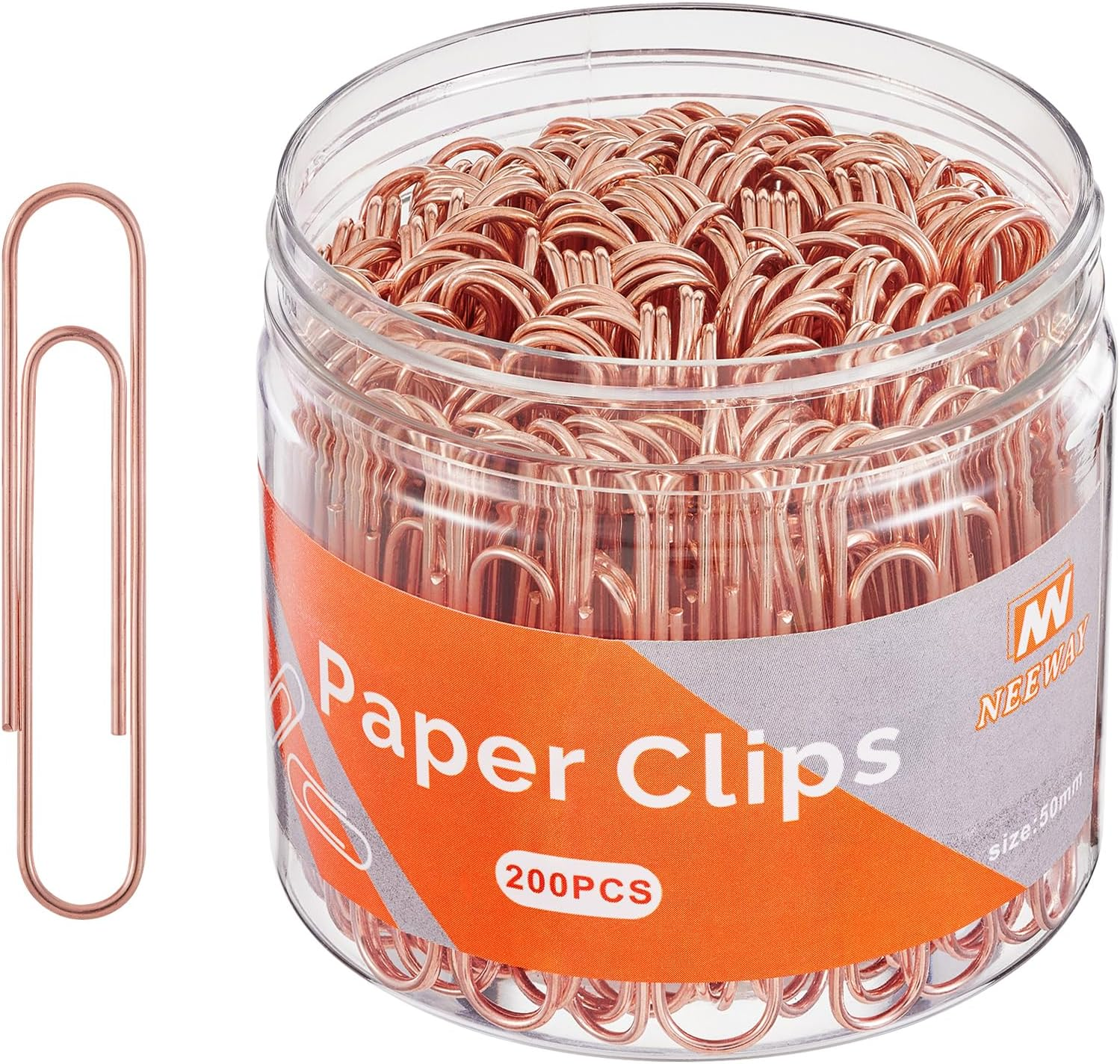 Neeway Rose Gold Paper Clips, 200 Count Large Size, 2 Inch Jumbo Paperclip