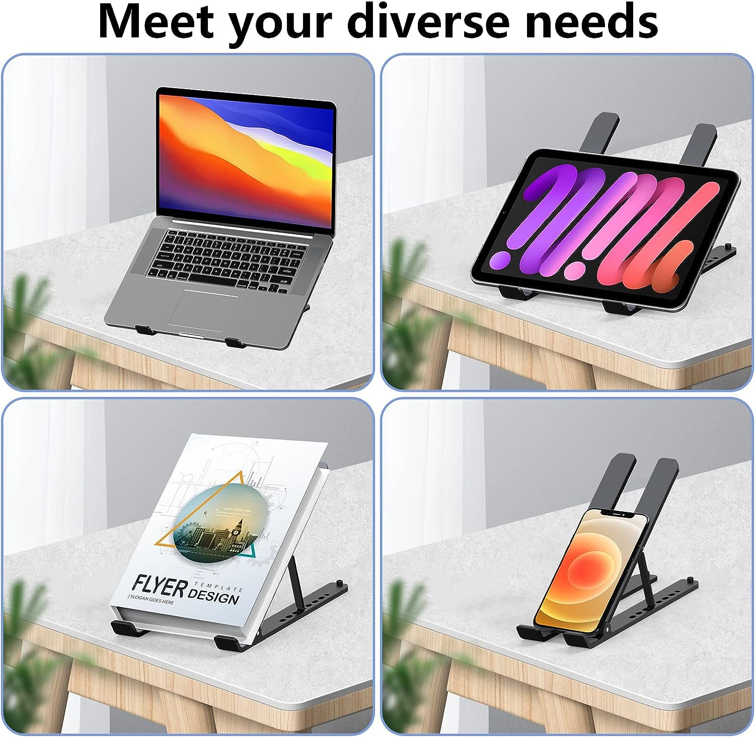 - ✅【Portable & Foldable】:This portable laptop stand only weighs 0.8 pounds and can be quickly folded into a small size of 9.52” x 2” x 0.9”. Easy to carry anywhere with a durable sleeve bag. Ideal for people who travel for business a lot.
