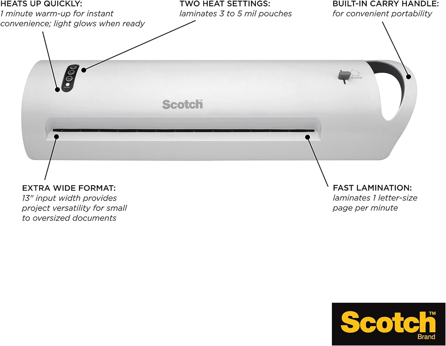 Scotch Extra Wide 13" Thermal Laminator w/ 20 Letter Size Pouches (TL1302XVP)