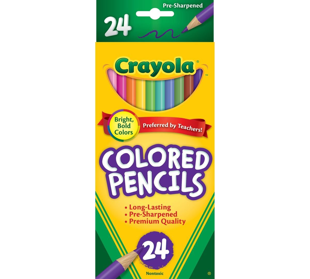 - Contains 24 bright intense colors, Pre-sharpened long pencils that are strong and durable