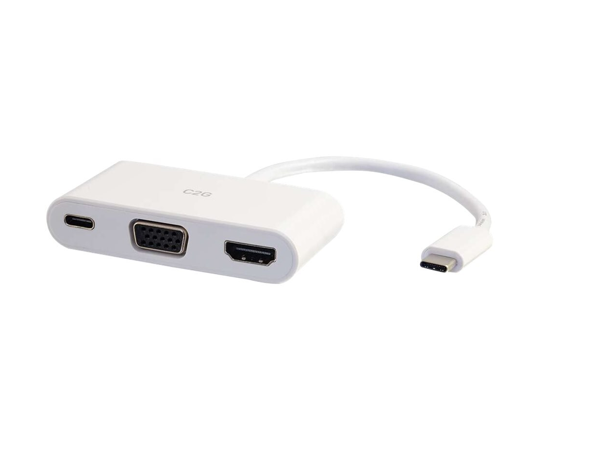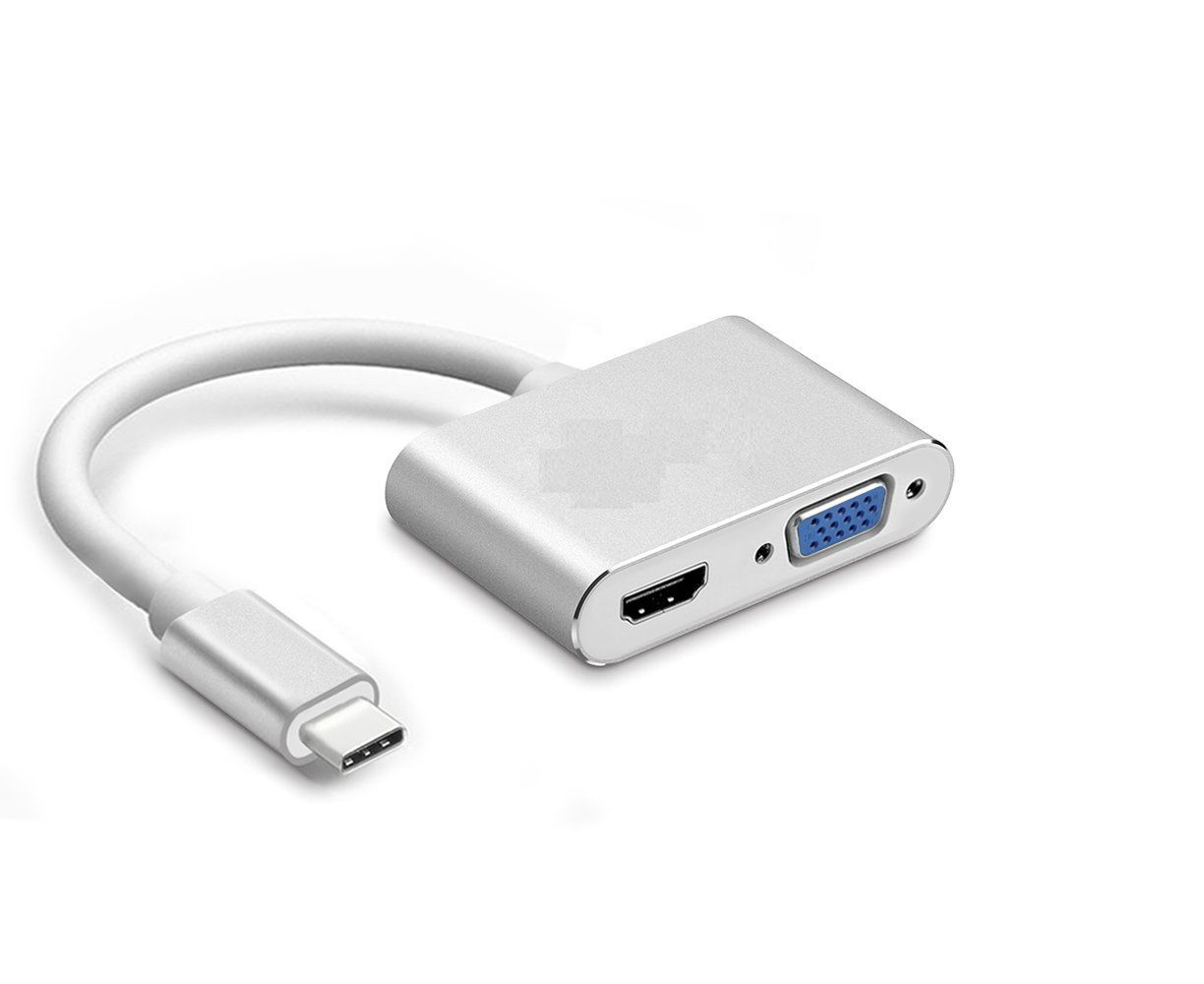 The USB-C to HDMI and VGA Adapter Converter with Power Delivery is an ideal solution for connecting a USB-C or Thunderbolt 3 enabled laptop, tablet, or desktop computer to HDTVs, projectors, or other displays with HDMI and VGA ports and features a USB Type-C port with power delivery.
