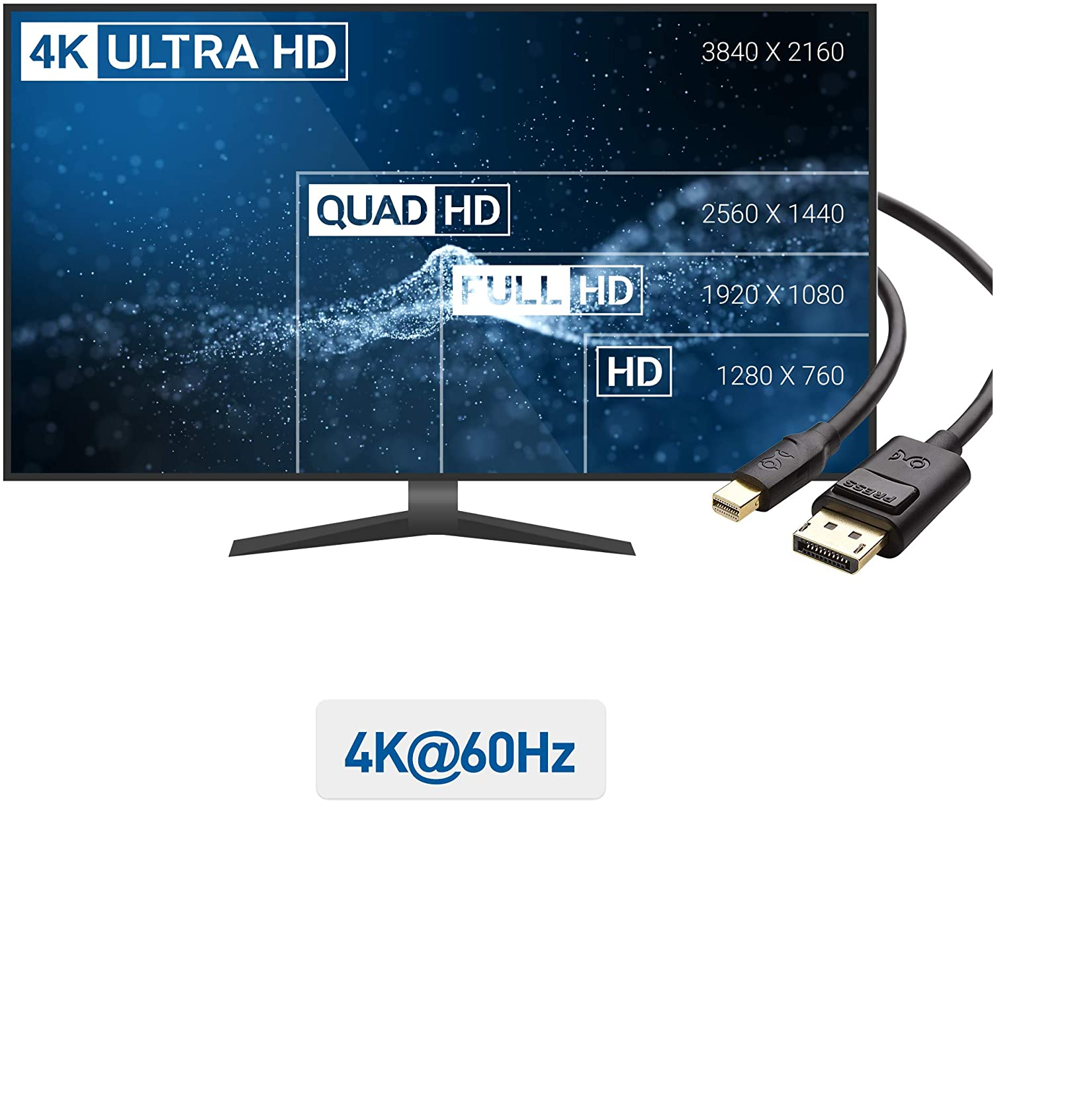 - Thunderbolt 2 to DisplayPort cable transmits both audio and video from computer or tablet to HD monitor display; Thunderbolt to DisplayPort cable supports 2K (2560x1440) HD resolution and flawless audio pass-thru for uncompressed digital 7.1, 5.1 or 2 channels