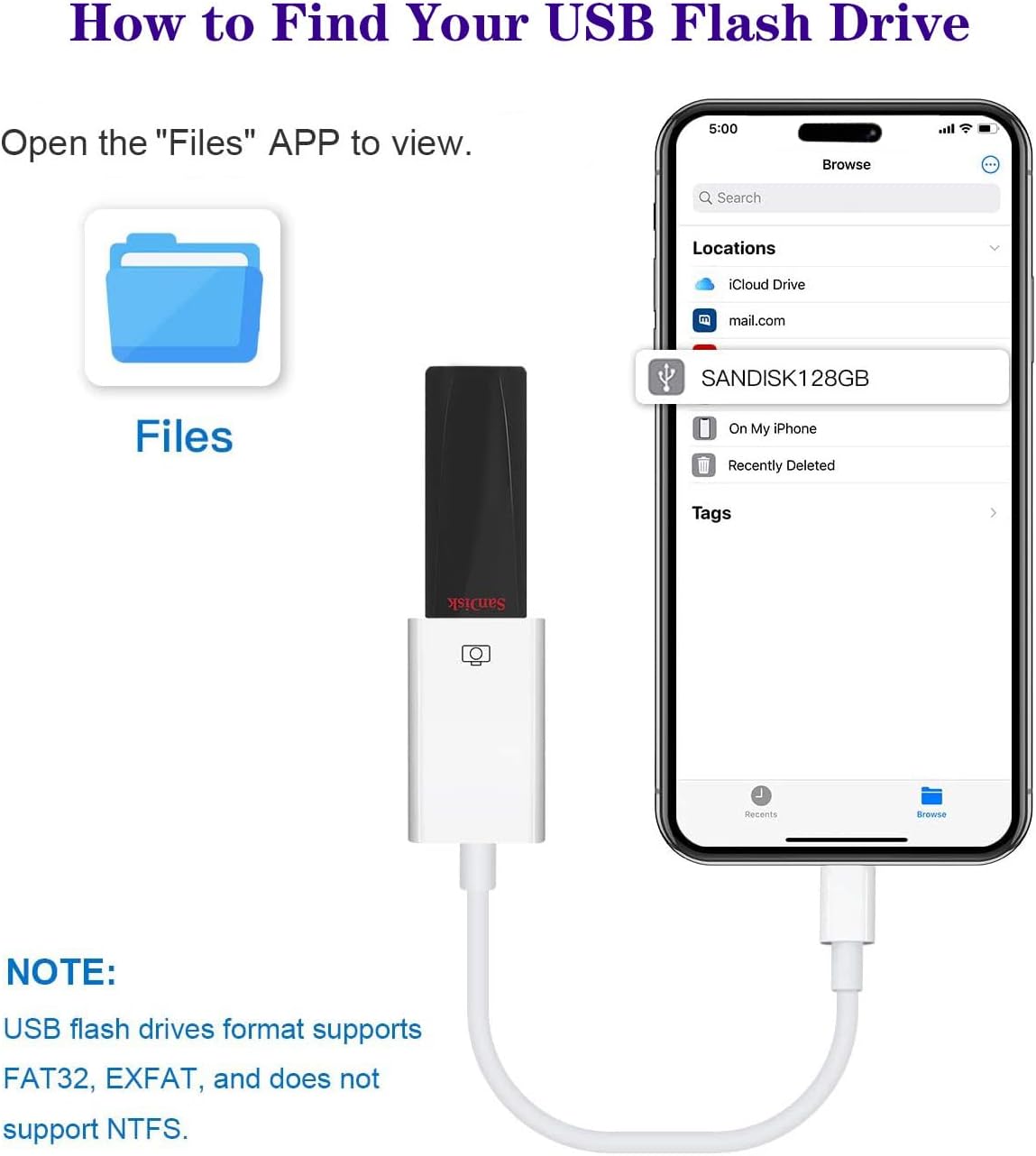 a short period. With this USB to iPhone adapter, you can transfer photos