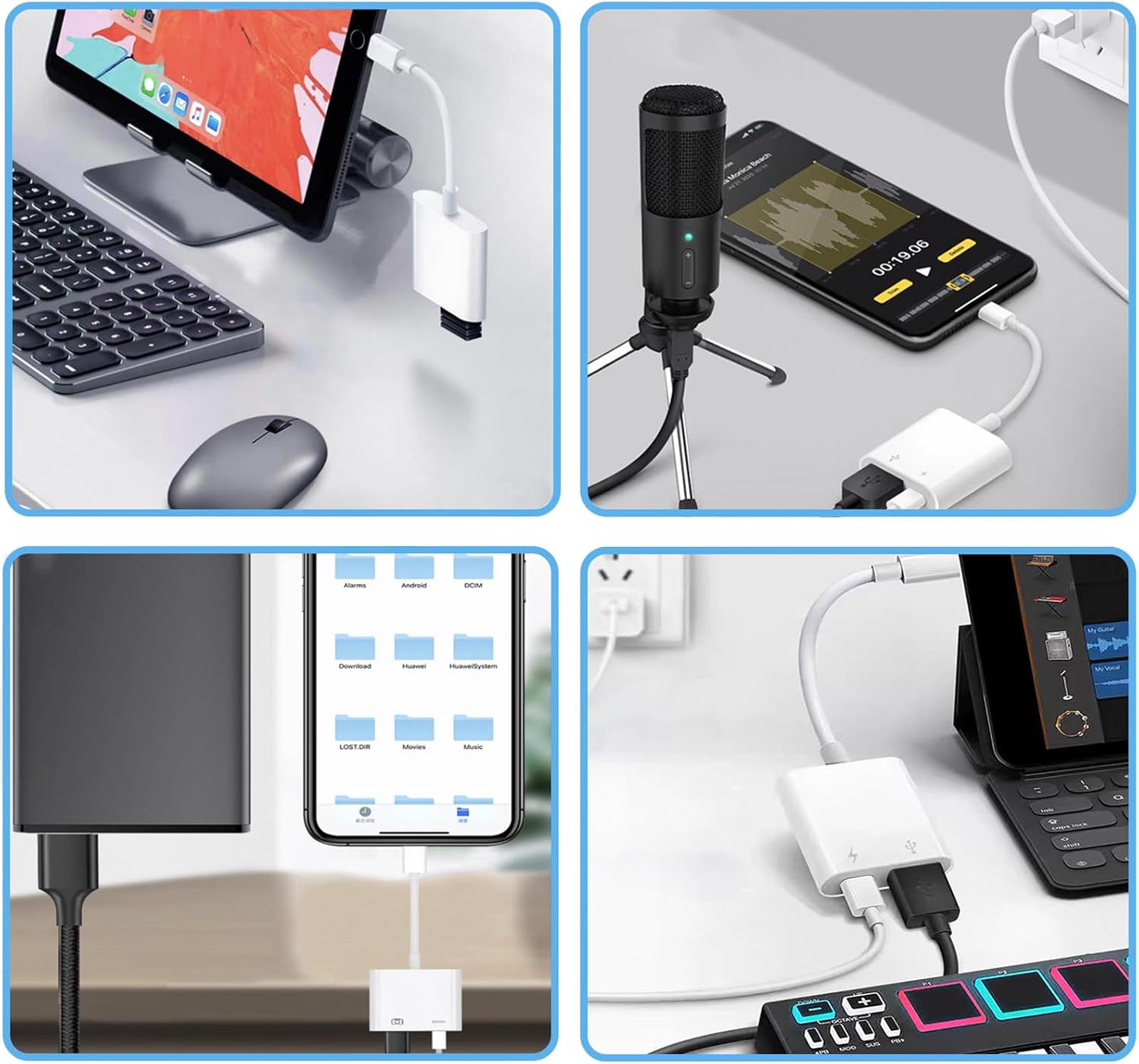 Lightning to USB Camera Adapter with Charging Port, Portable USB 3.0 Female OTG Cable Adapter for Select iPhone,iPad Models, Support Card Reader, USB Flash Drive, MIDI Keyboard