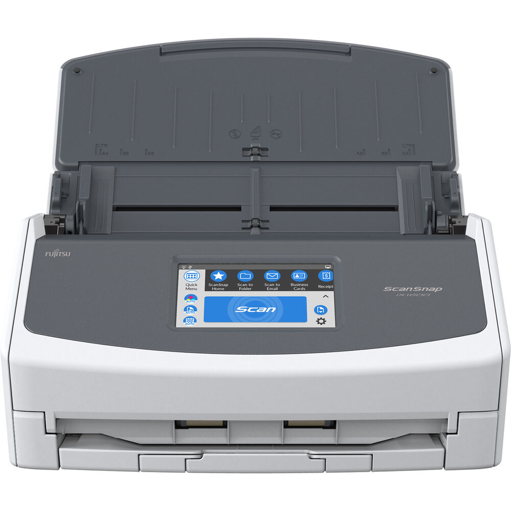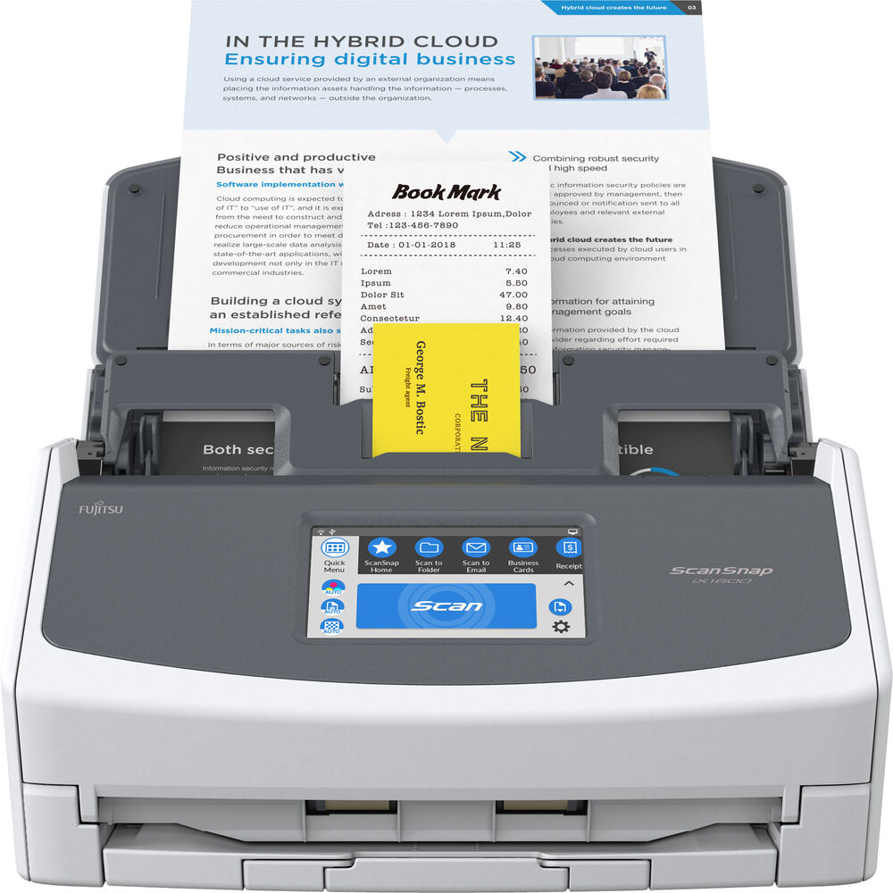Digitize, organize, and share information with the ScanSnap iX1600 Document Scanner , in white, from Fujitsu. Featuring a 4.3" color touchscreen, this scanner provides you with a 50-sheet ADF for fast and efficient scanning. The iX1600 connects over Wi-Fi or via an included USB cable, allowing for flexible placement options. Simple icons make organizing, saving, and finding documents an easy process. Fast start-up and stable feeding performance provide you peace of mind while you carry out your tasks.