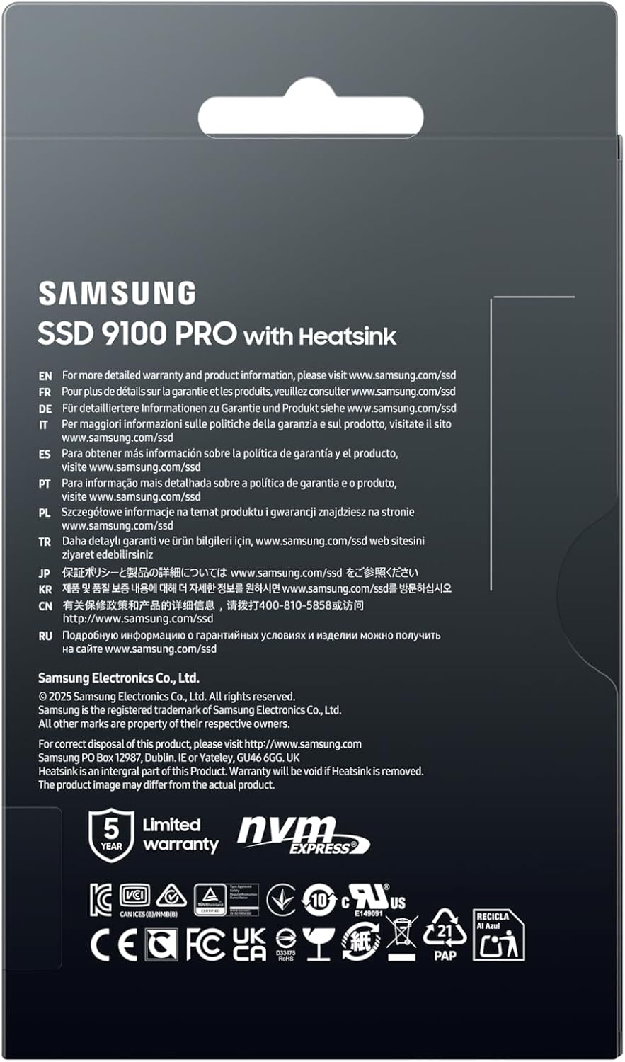Samsung 9100 Pro PCIe 5.0x4 NVMe M.2 2280 SSD - 1TB