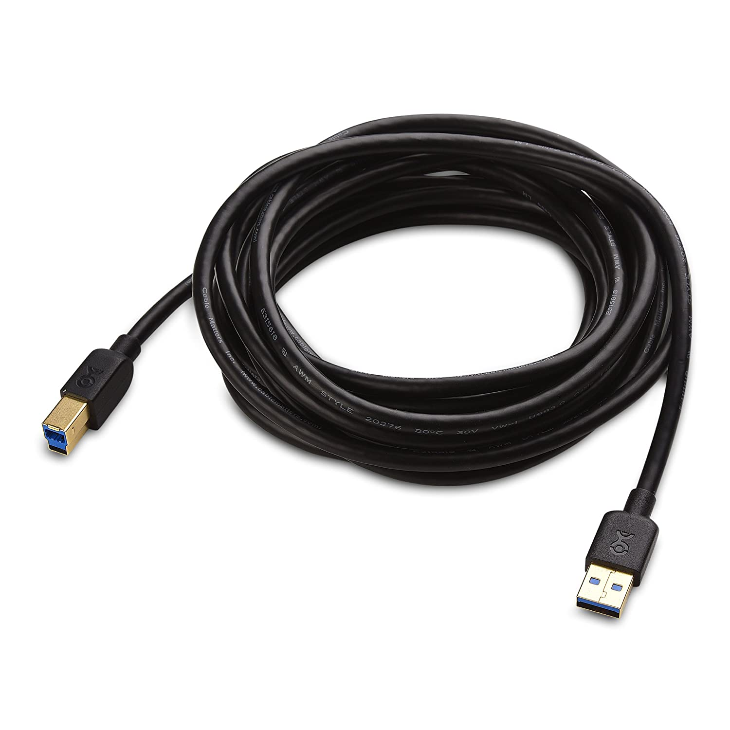 Cable Matters Long USB 3.0 Cable (USB 3 Cable, USB 3.0 A to B Cable) in Black 15 ft