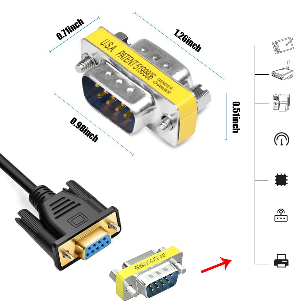 - CONFIGURATION: These DB9 mini gender changers are constructed of nickel plated and have precision-made connectors for increasing corrosion protection,offering lossless signal and ensuring long using lifespan.