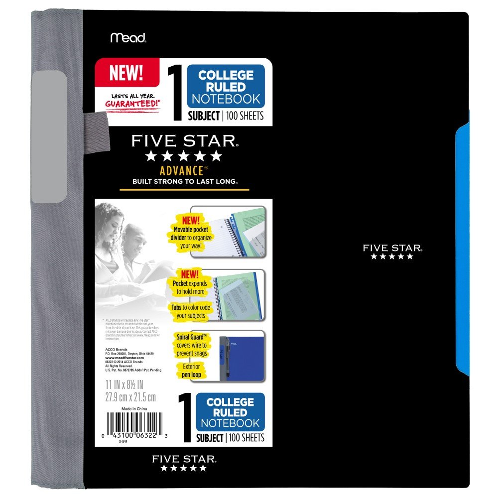 - 1 x Five Star Wire bound Notebook,1-Subject, 100 Pages College-Ruled Sheets, 11 x 8.5 Inch Sheet Size