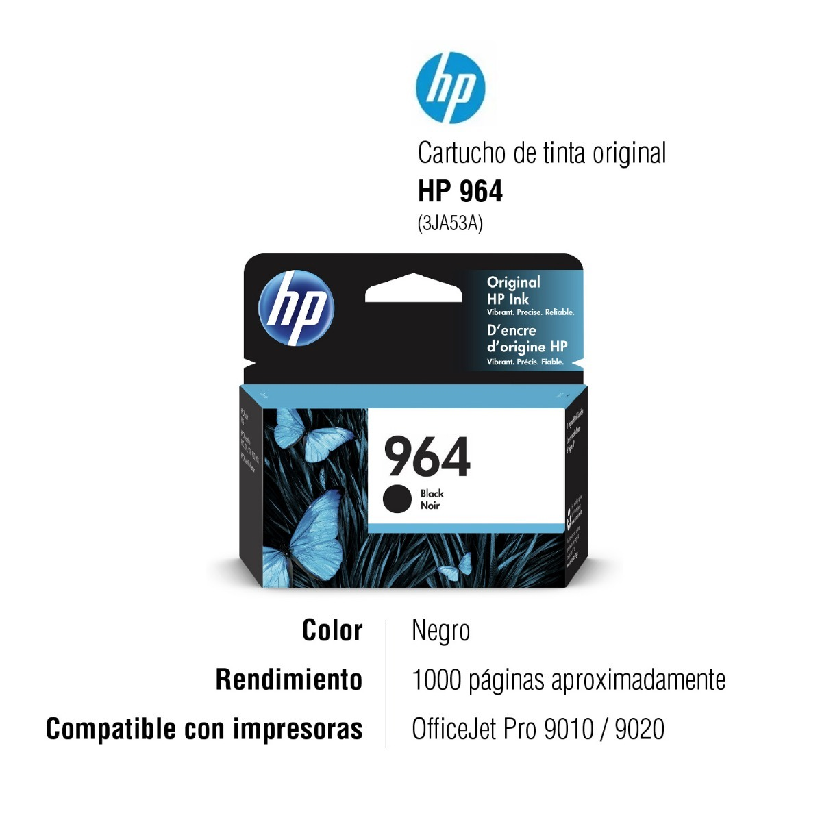 With the original HP 964 black ink cartridge print professional color page after page, and save costs compared to laser printers. Produce realistic marketing documents and materials with excellent vibrant color for a lower cost per page and recycle your cartridges with ease.