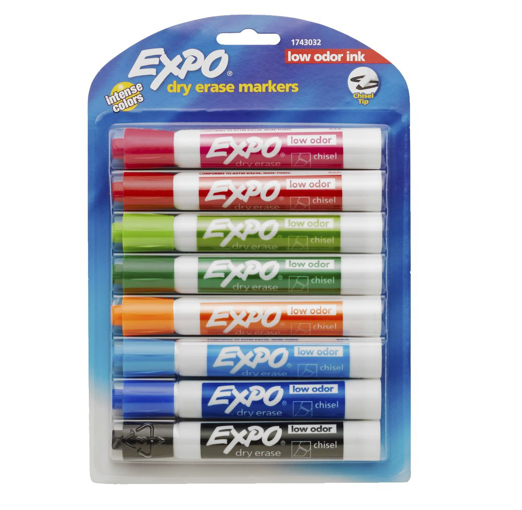 - Expo Low Odor Dry Erase Markers, Chisel Tip, 8 Pack, Vibrant Colors (1927524)