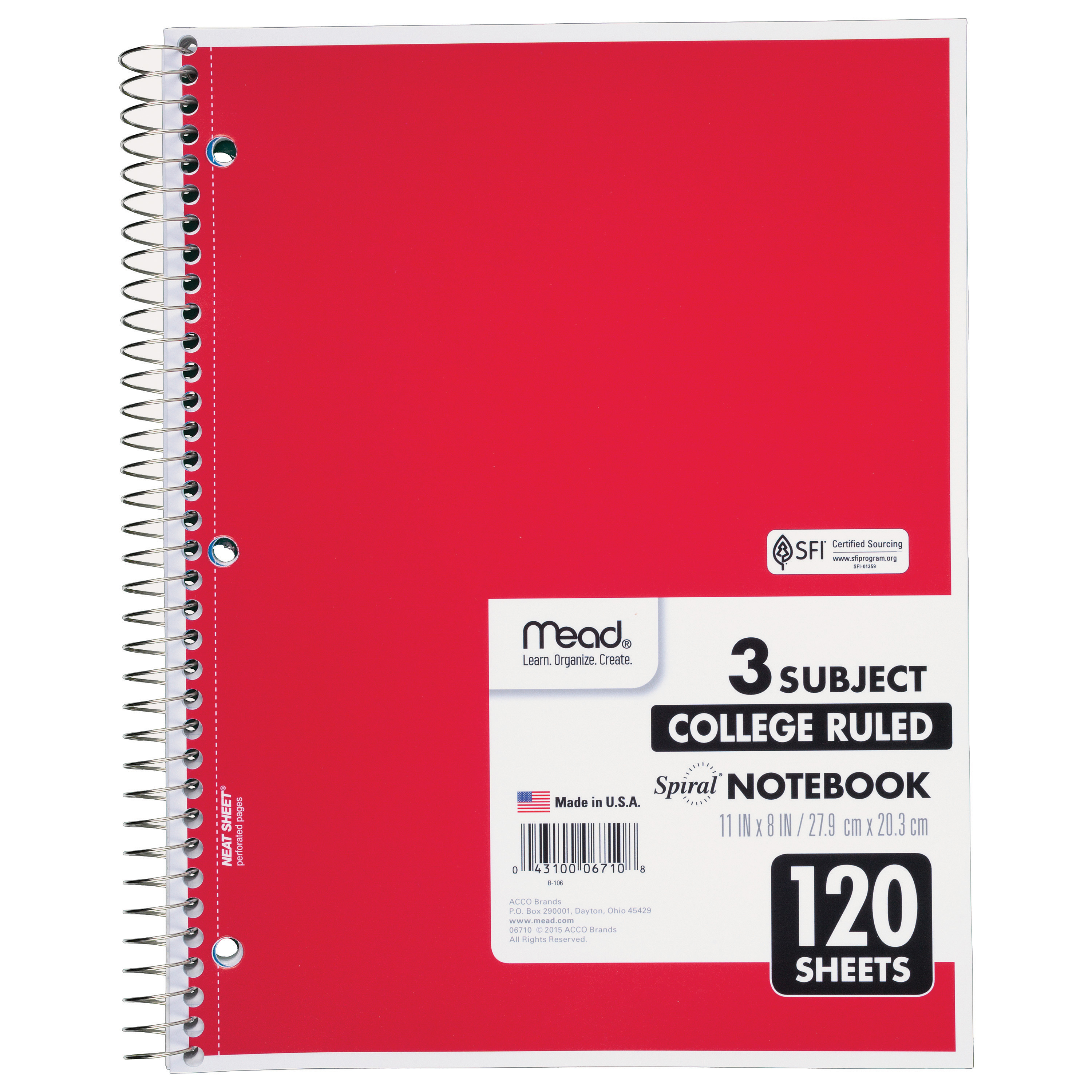 Get more usable space and stay organized with the 3 subject notebook that is college ruled and available in a variety of colors. It?s versatile and perfect for a variety of uses including in-class note taking and recording meeting notes..
