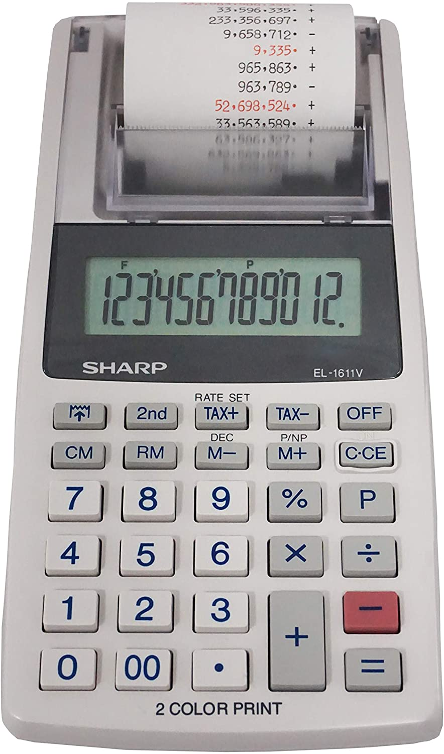 - LARGE LCD DISPLAY & 2 COLOR PRINTER - A large 12-digit LCD display and 2 color printer helps to easily see the numbers
