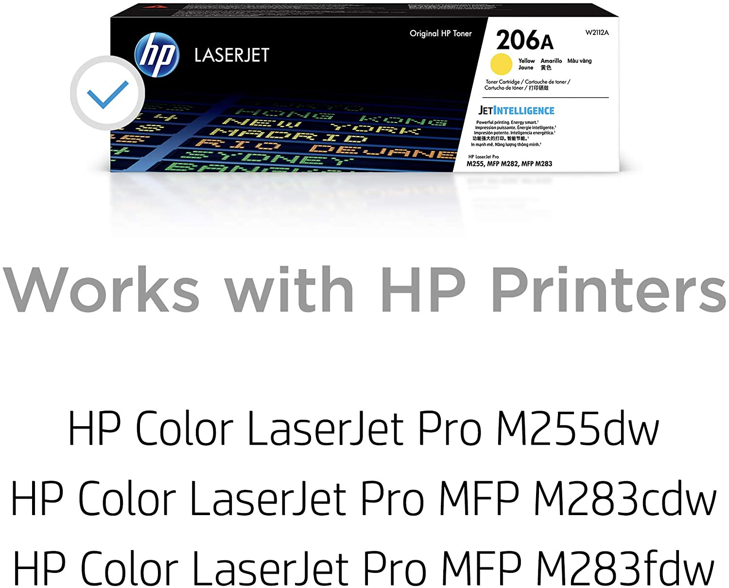- HP 206A toner cartridges work with: HP Color LaserJet Pro M255dw, M283fdw, M283cdw