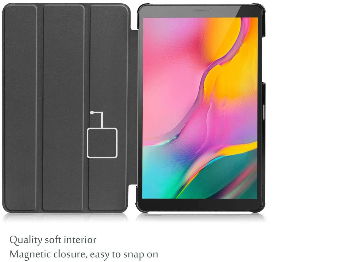 Magnet secures the case closure, easy snap on and off. Kindly Note: The Galaxy Tab A 8.0 2019 T290 T295 tablet itself doesn't have sleep/wake capabilities so that there is no case offering this feature
