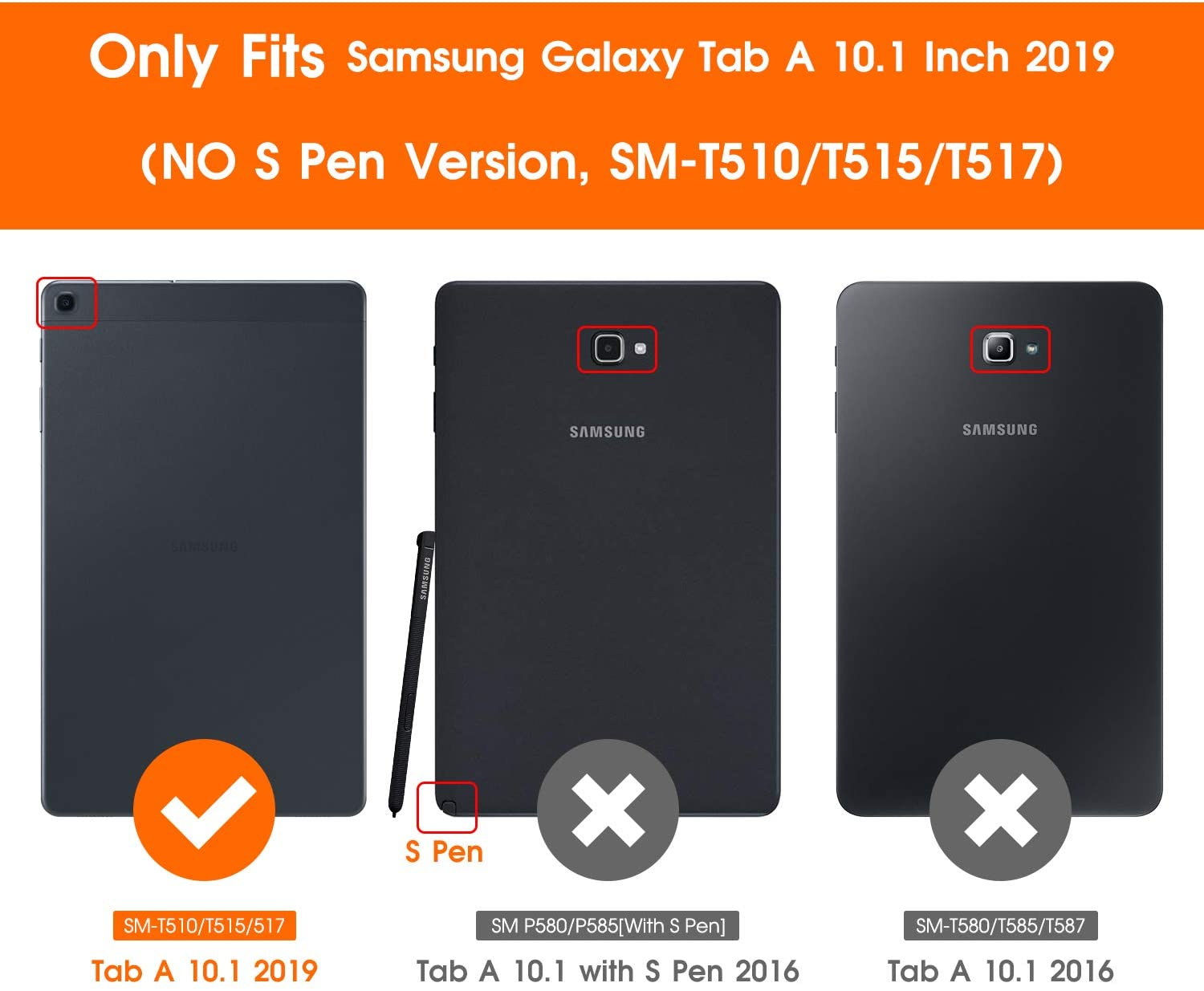 - Designed for 2019 New Galaxy Tab A 10.1 - Exclusively designed for Newest Samsung Galaxy Tab A 10.1(SM-T510/T515/T517,2019 Released). -- Note: NOT Fit 2016 Released Samsung Tab A 10.1 (SM-T580/T585/T587/P580/P585/P587) or any other model tablet.
