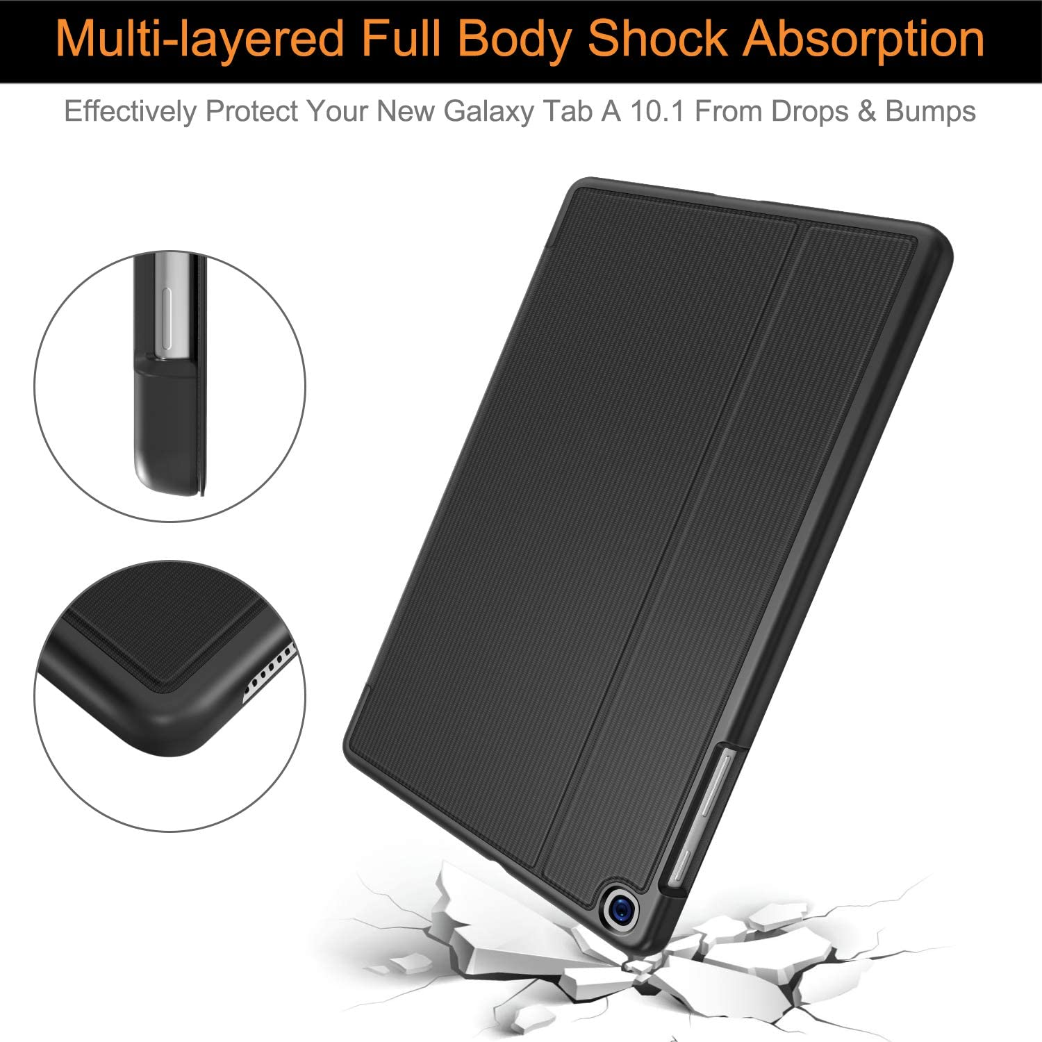 Soke Galaxy Tab A 10.1 Case 2019, Premium Shock Proof Stand Folio Case, Multi- Viewing Angles, Soft TPU Back Cover for Samsung Galaxy Tab A 10.1 inch Tablet [SM-T510/T515/T517],Black