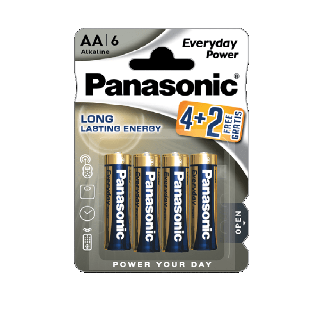 Alkaline Battery Blister Pack x6 (4+2) Panasonic Everyday Power LR6 - AA 1.5V 3.4Ah