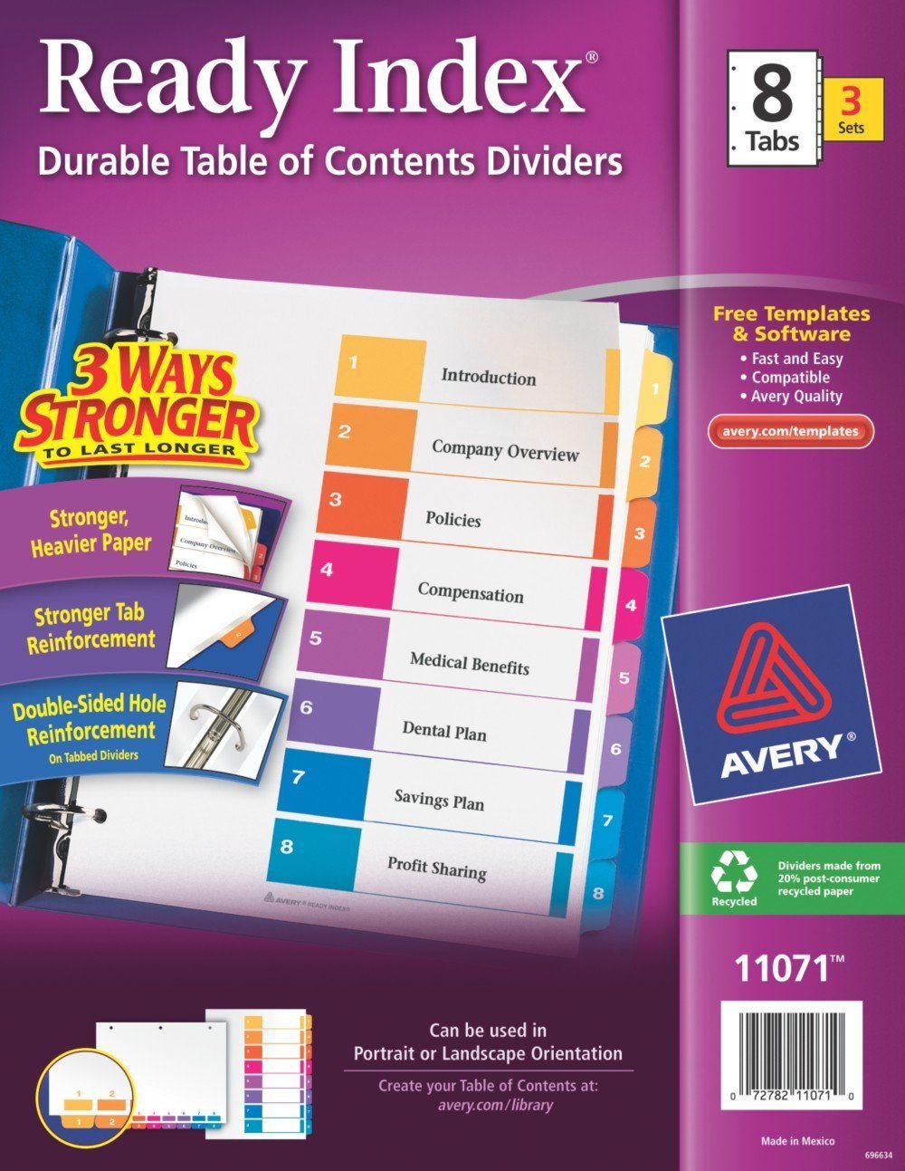 Print or photocopy titles framed with bright colors matched to preprinted tabs. Now three ways stronger to last longer. Stronger heavier weight paper, stronger tab reinforcements and double-sided hole reinforcements. Print or photocopy titles framed with bright colors matched to preprinted tabs. Now three ways stronger to last longer. Stronger heavier weight paper, stronger tab reinforcements and double-sided hole reinforcements. Global Product Type: Index Dividers-Preprinted Monthly; Index Divider Size: 11 x 8 1/2; Tab Title(s): Jan.-Dec.; Tab Color(s): Multicolor.