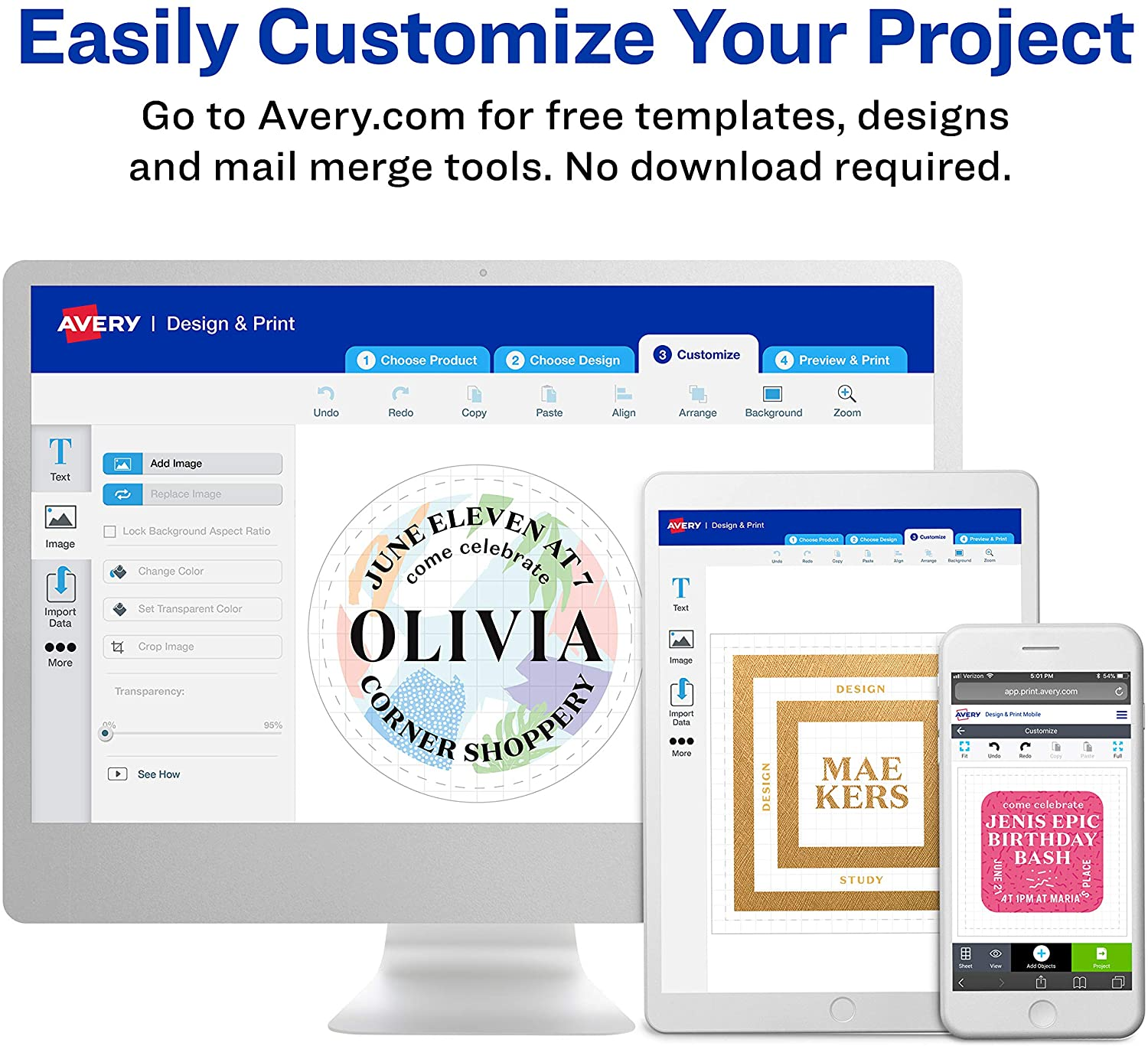 Add some color to your life. Avery Color Coding Labels aid in organizing your home or workplace. Labels stick firmly to documents, inventory, sale items and more to draw the eye and help keep your important objects well sorted. Mark notes on the labels by hand or use the free templates available at avery.com to customize the labels and print them with either your laser or inkjet printer. Removable labels let you peel them away when you no longer need them. Be bold and color your world a little brighter.