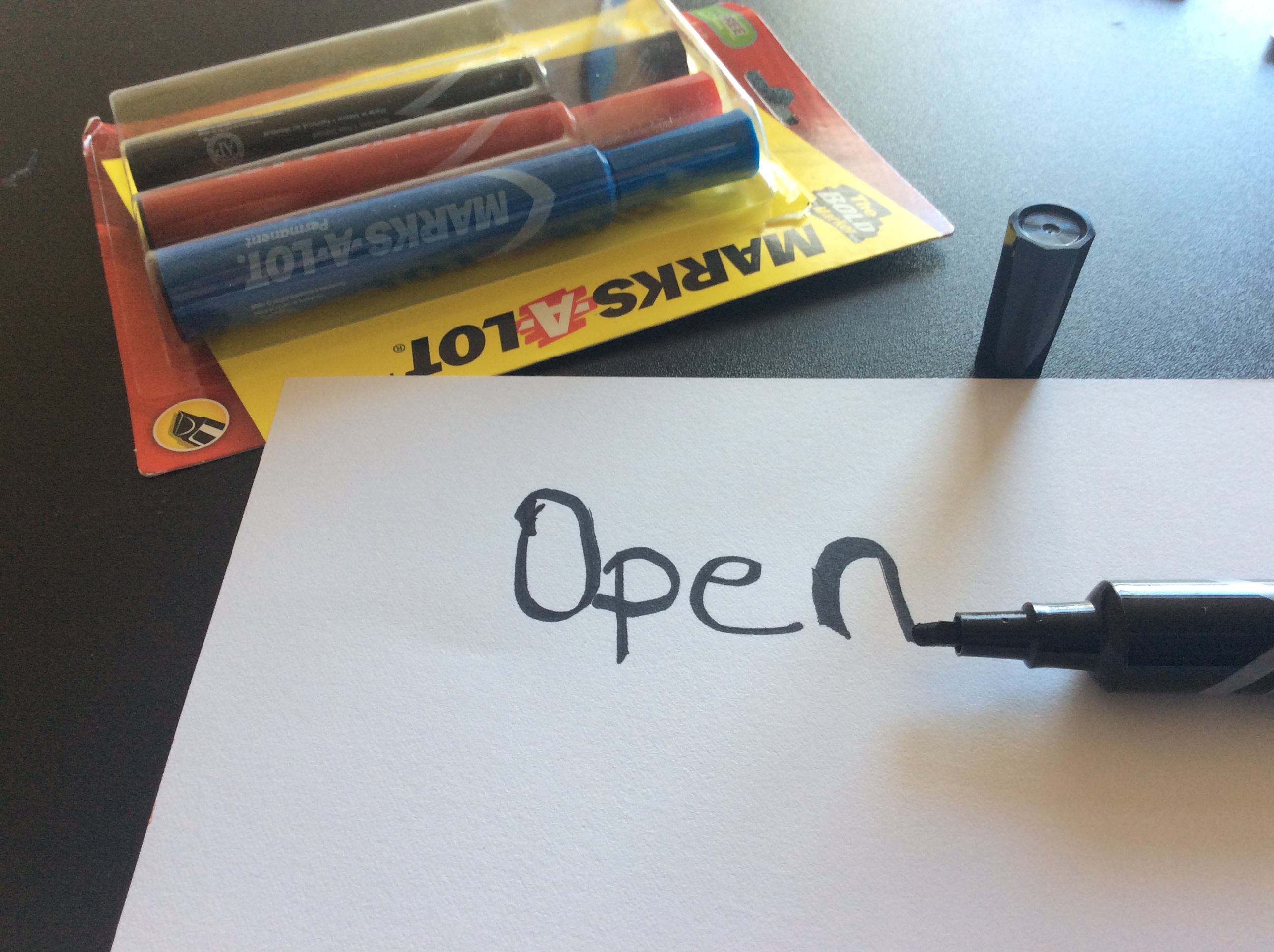 Permanent Markers deliver a bold, low-odor ink that provides high visibility rom a distance on most surfaces including cardboard, metal and plastic. Large barrel contains a generous ink supply. Permanent ink is quick-drying, water-resistant and rub-resistant to minimize smudging. Large chisel tip marks in a variety of line widths from thin to extra wide. Nontoxic marker is great for making sings, posters and banners.