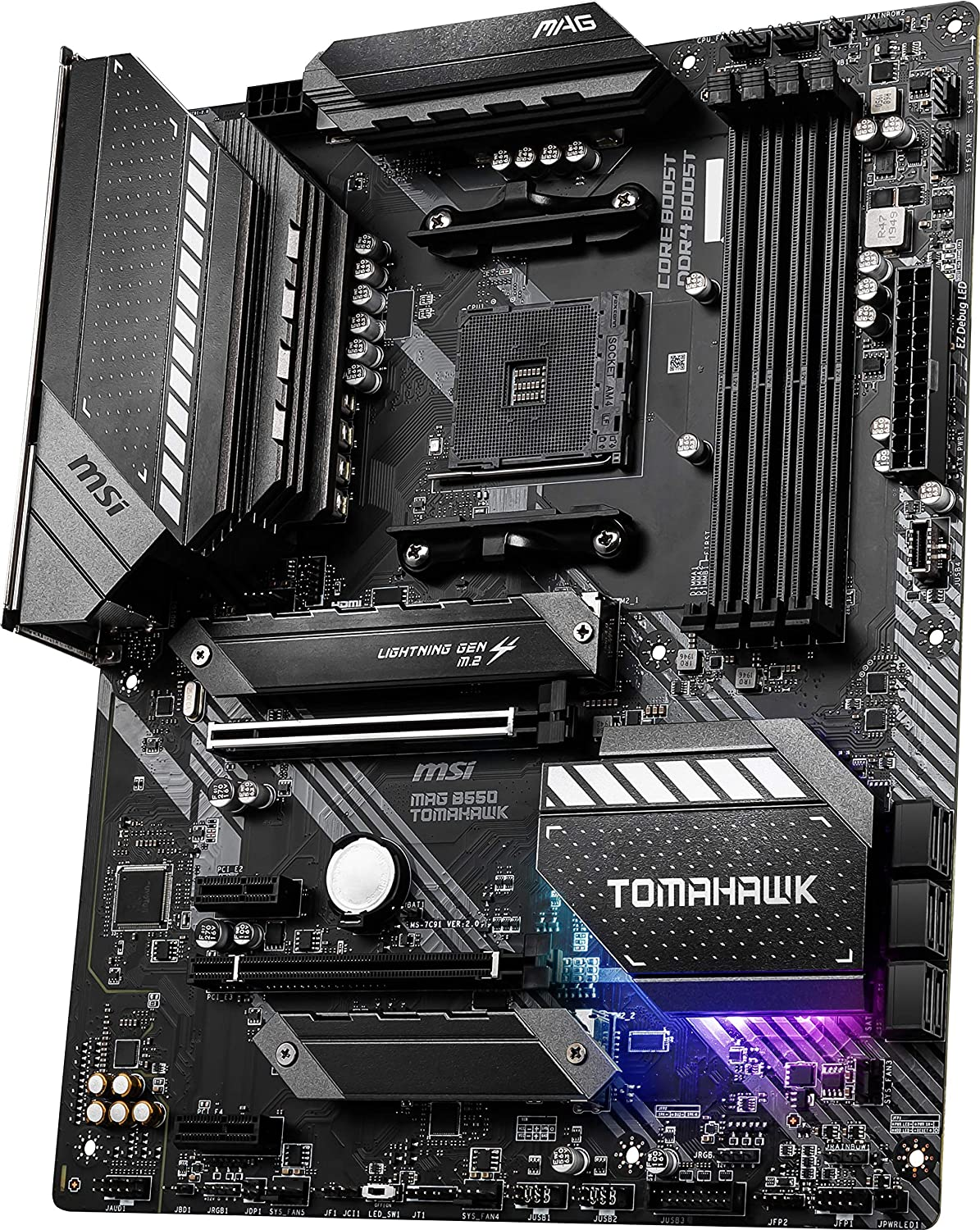 MSI MAG B550 TOMAHAWK Gaming Motherboard (AMD AM4, DDR4, PCIe 4.0, SATA 6Gb/s, M.2, USB 3.2 Gen 2, HDMI/DP, ATX, AMD Ryzen 5000 Series processors)