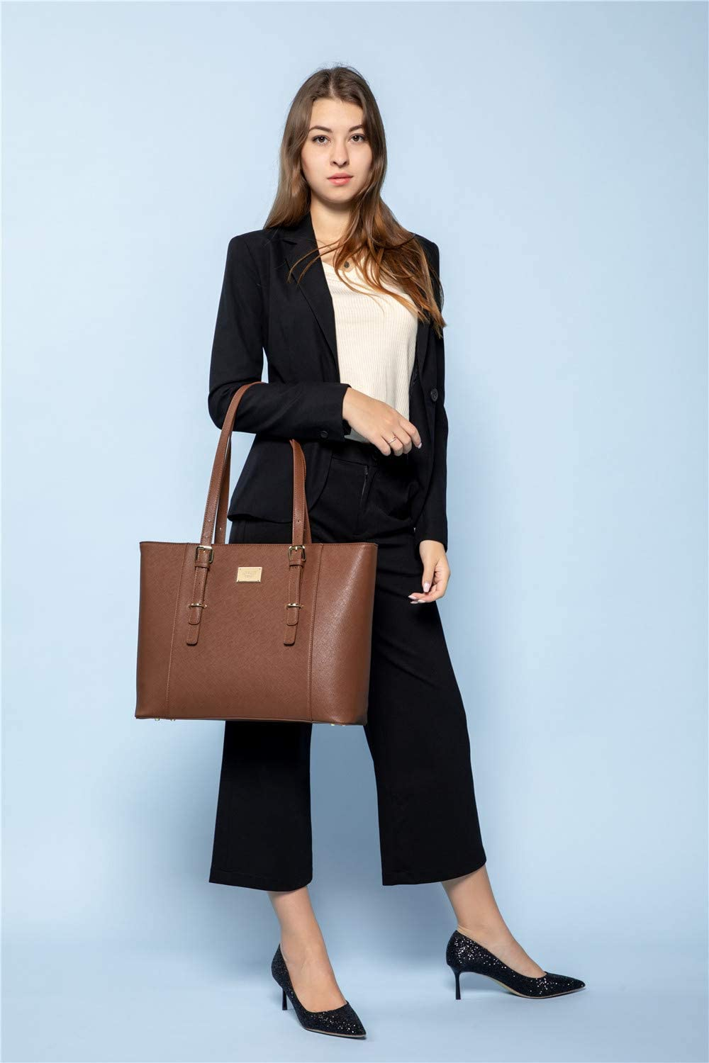 Lovevook Laptop Bag for Women Large Office Handbags Briefcase Fits Up to 15.6 inch - Brown