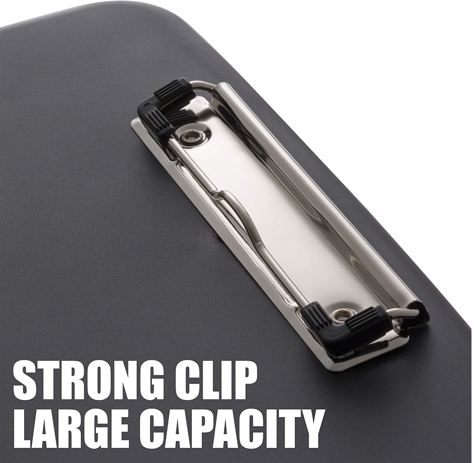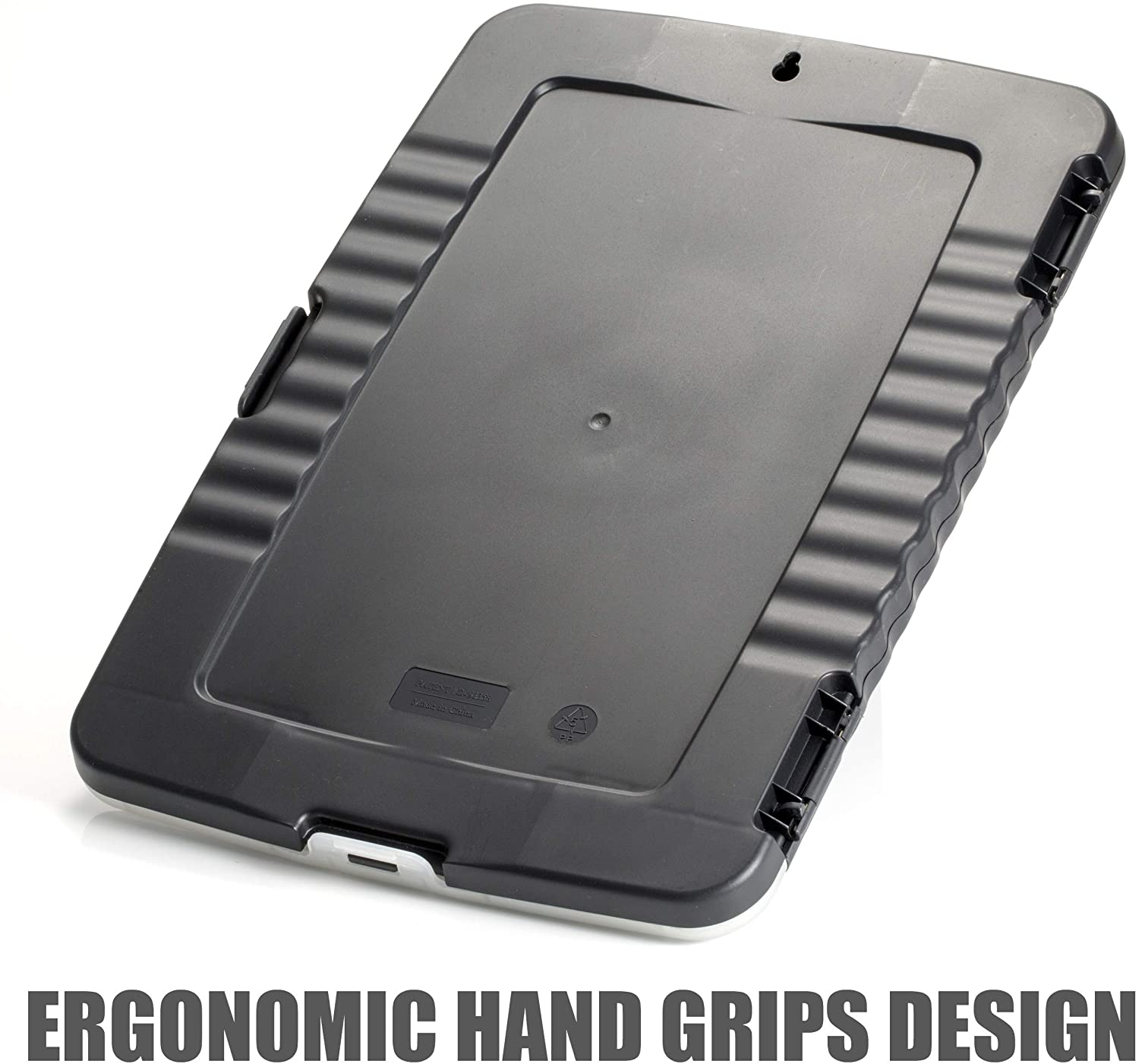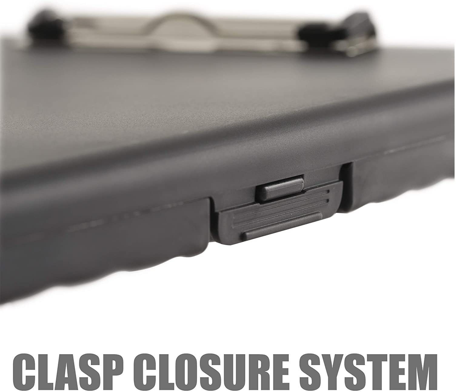 - Slim storage clipboard includes a low-profile clip with ergonomic finger grips; clasp closure