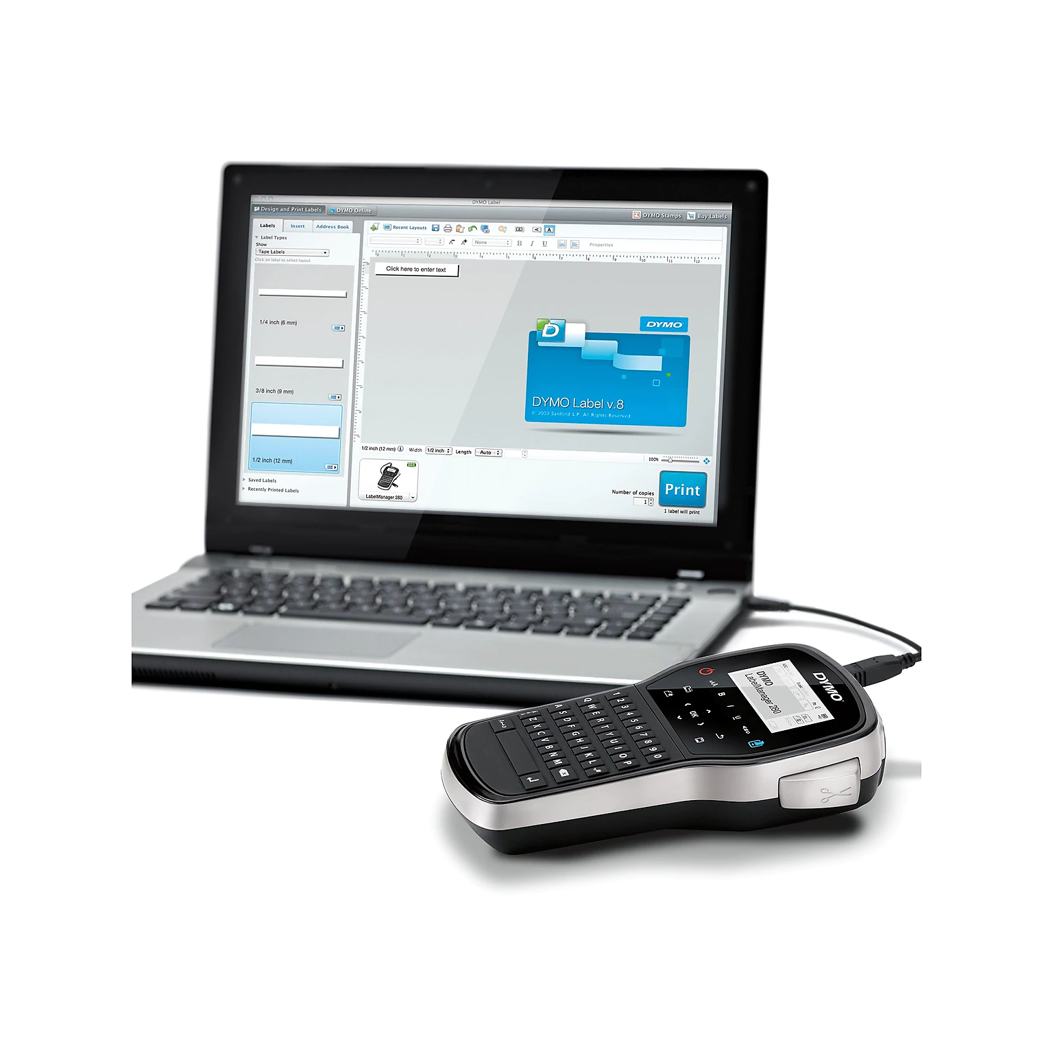 DYMO Label Maker | LabelManager 280 Rechargeable Portable Label Maker, Easy-to-Use, One-Touch Smart Keys, QWERTY Keyboard, PC and Mac Connectivity, for Home & Office Organization
