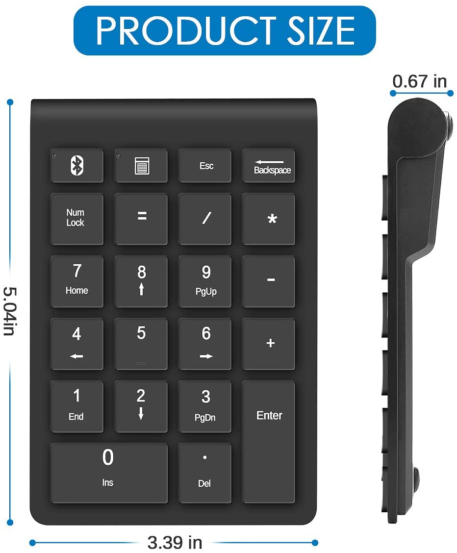 - 1.22-KEYS NUMBER KEYPAD: Numeric Keyboard supports NumLock, ESC, Tab, Delete etc. With shortcut key which can open the computer calculator directly. The Muli-Function 22 Keys Wireless external number keypad for laptop is more unique than most keyboards.
