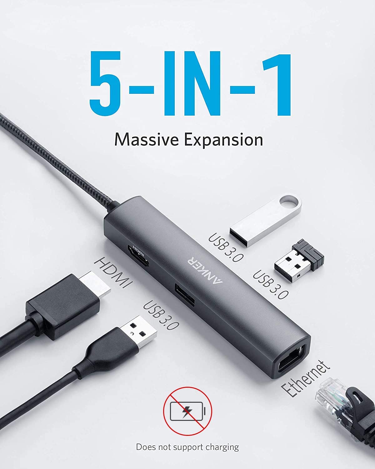 Anker USB-C Adapter 5 in 1 with 4K USB-C to HDMI