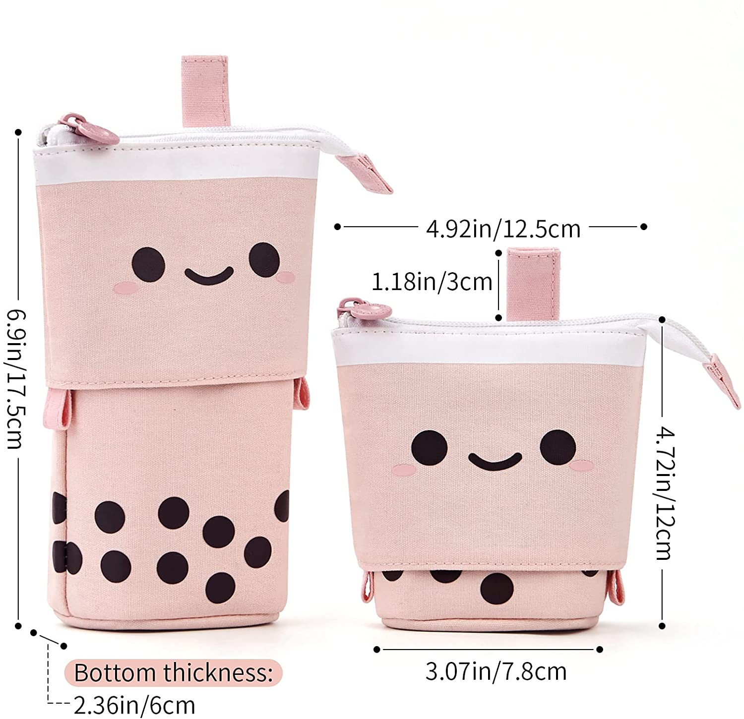 - CUTE DESIGN: This pencil case has a Boba tea shape with a straw, making your life full of fun. It is spacious enough to store and organize your stuff.