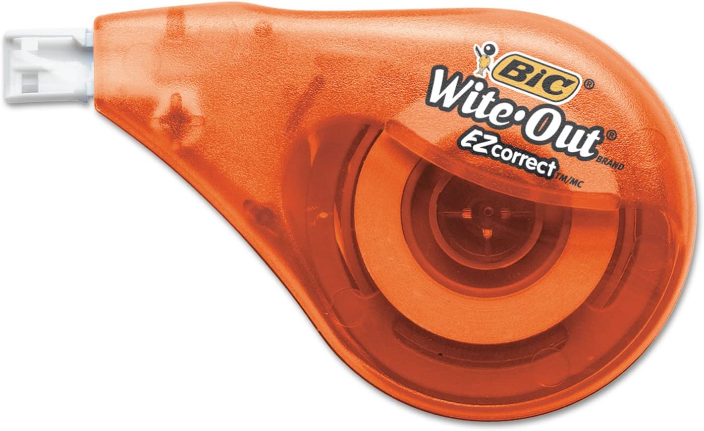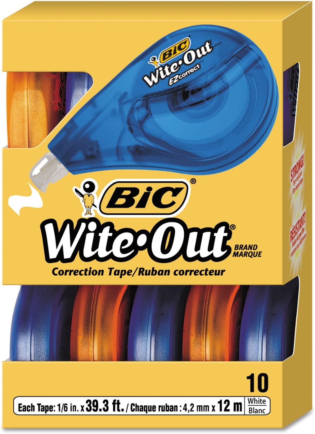 Fix mistakes fast with BIC Wite-Out Brand EZ Correct Correction Tape. The tape applies dry, so you can write over it instantly! The tape is tear-resistant and film-based for easy and convenient correction. It is fast, clean and easy to use. The translucent body provides visible tape supply. Contains 39.3 feet of correction tape.
