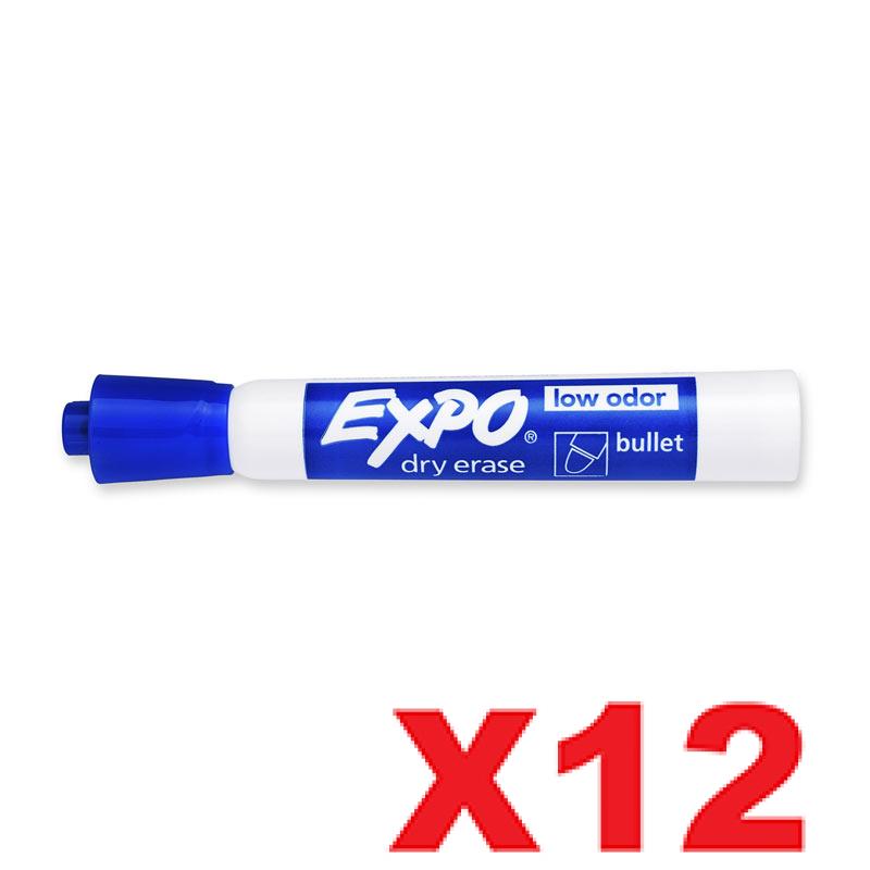 12 x Expo Whiteboard Marker Bullet Tip - Blue