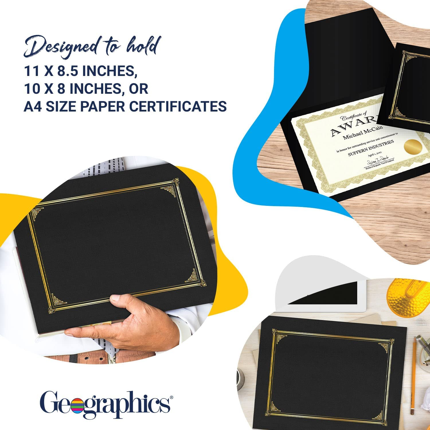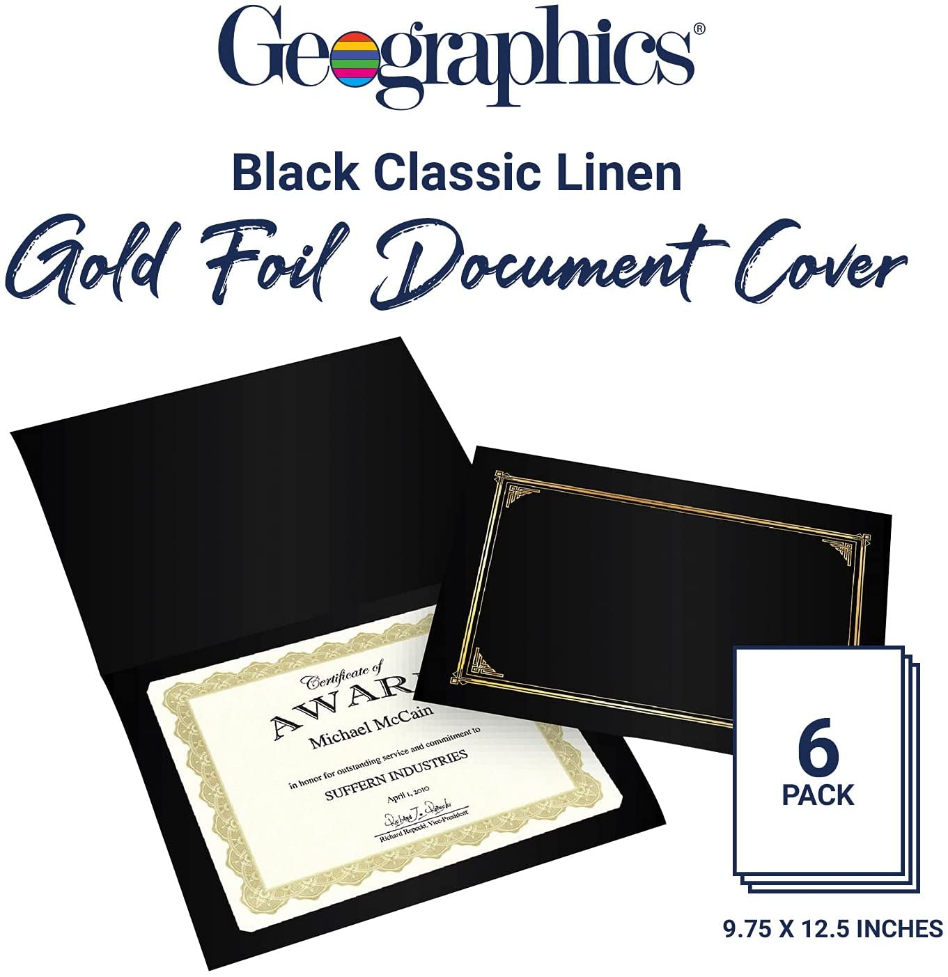 Geographics Classic Linen Certificate/Document Covers, 12.5 x 9.75in, Black (6 Pack)