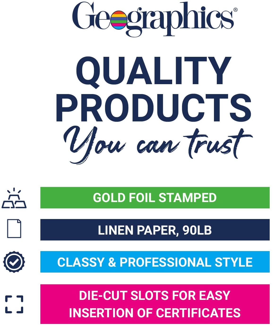Geographics Classic Linen Certificate/Document Covers, 12.5 x 9.75, Navy Blue (6 Pack)