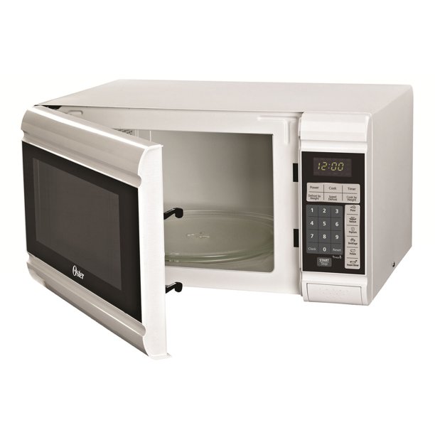 - COMPACT-SIZE MICROWAVE OVEN: The Oster 0.9-cu. ft. countertop microwave oven features 900 watts of power and 10 power levels for no-hassle heating, reheating, and defrosting of food.