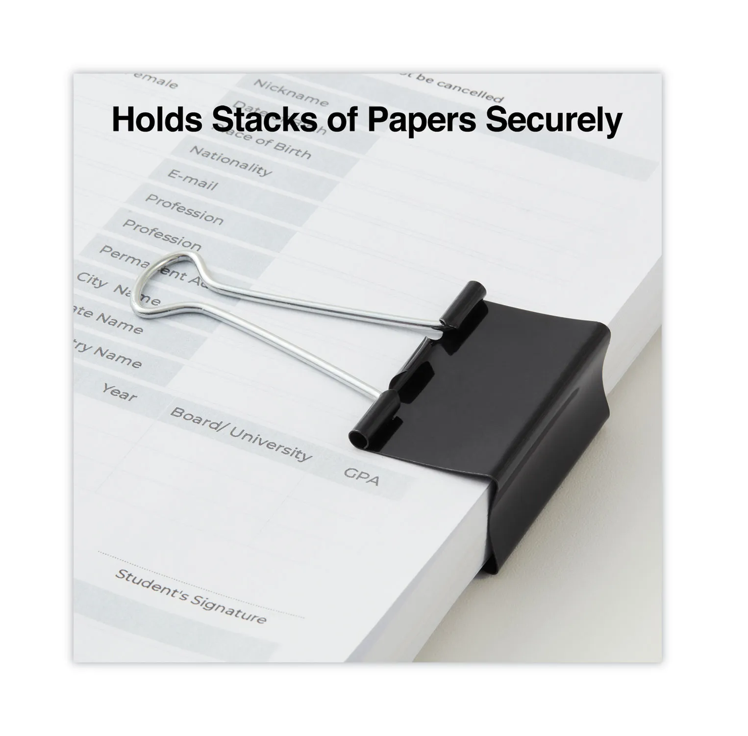 Universal Binder Clips in Zip-Seal Bag Large, Black/Silver, 36/Pack