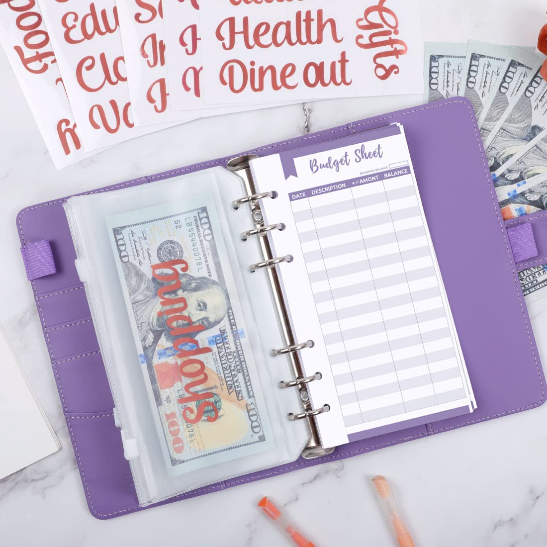 SKYDUE Budget Binder With Cash Envelopes & Expense Budget Sheets - Dark Purple