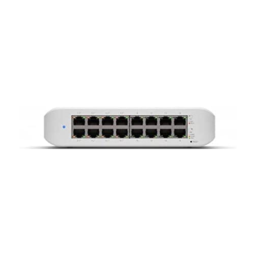 The UniFi Switch Lite 16 PoE is a fully managed Layer 2 switch with 16 Gigabit Ethernet ports for your RJ45 Ethernet devices. 8 ports also offer auto-sensing 802.3at PoE+ that provide up to a total PoE wattage of 45W for UniFi Access Points or other PoE devices.